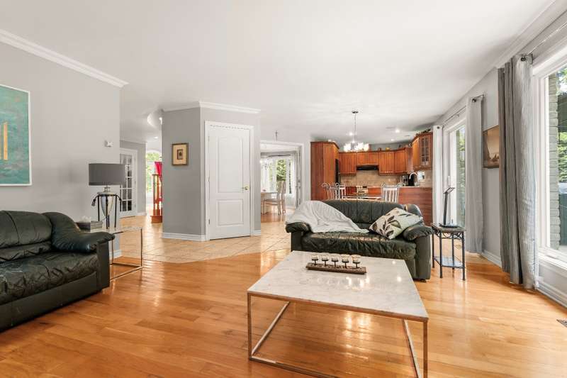 Beautiful home with great size living area on a cul-de-sac ideally located in Notre-Dame-de-L'Ile-Perrot!As you enter the home you are greeted with a stunning circular staircase and high ceilings.The formal living room off the entrance leads to the dining room, the open concept kitchen with dinette,family room area,powder room and laundry room.The second level has a spacious primary bedroom with ensuite bathroom and walk-in closet,three well sized bedrooms and full bathroom.The basement has a large family room,and a fourth bedroom.Fully landscaped, intimate backyard surrounded by trees with in ground pool and brand new fence!