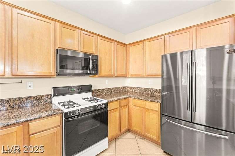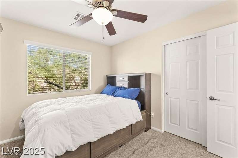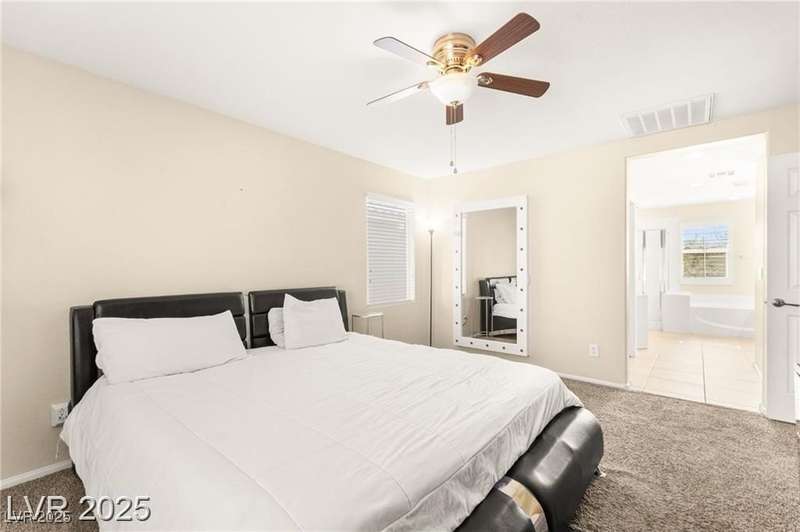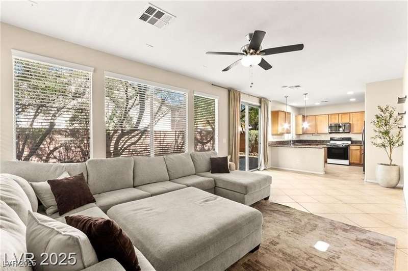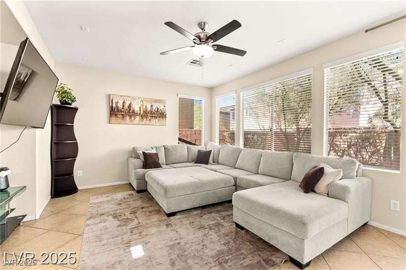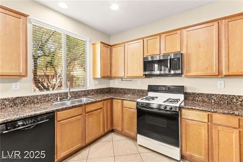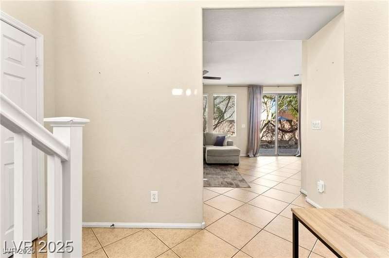 Nestled in the sought-after Mountains Edge Community, this charming 3-bedroom, 2.5-bath home offers a spacious and functional layout. The first floor features an open living room, dining area, and kitchen—perfect for entertaining. Enjoy tile flooring throughout the main level, ceiling fans for added comfort, and granite countertops in the kitchen. Upstairs, the large primary suite includes a private bath with dual vanities, a separate soaking tub, and a walk-in shower. The low-maintenance backyard provides a relaxing outdoor space with minimal upkeep. Great location close to parks, schools, shopping, and freeways—offering both comfort and convenience in a highly desirable neighborhood!