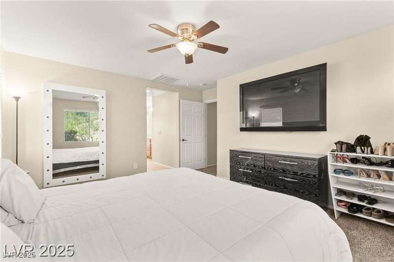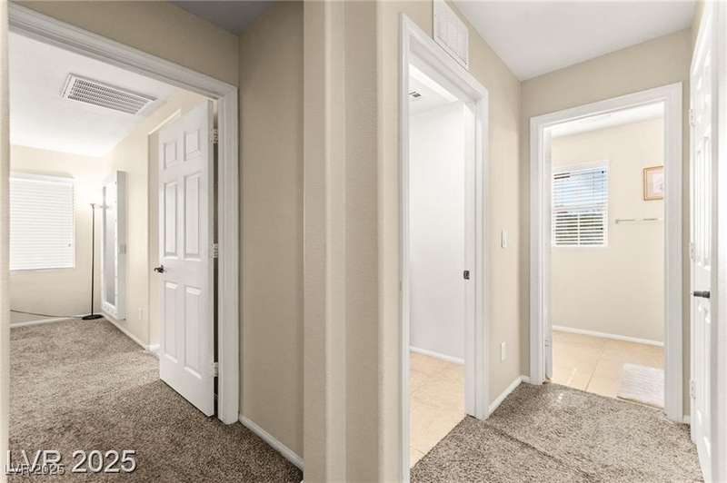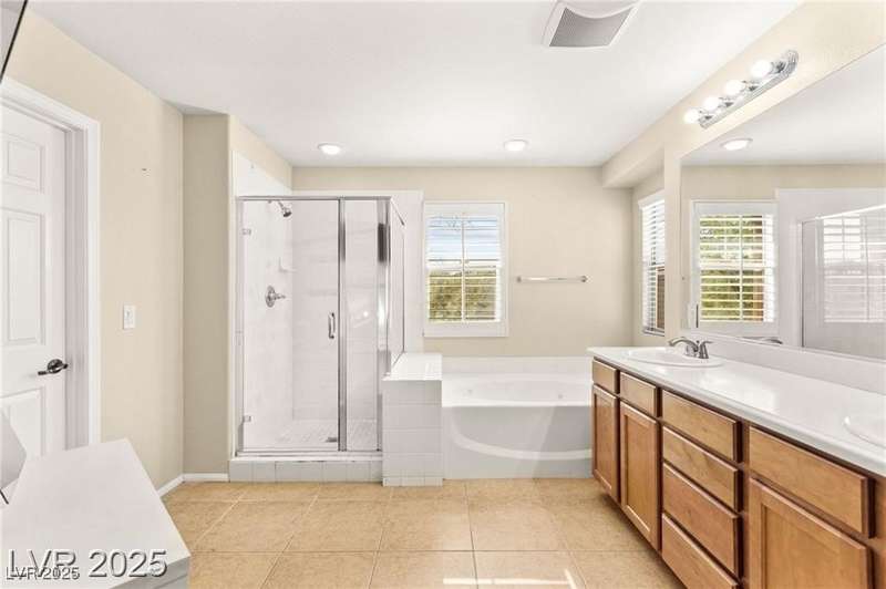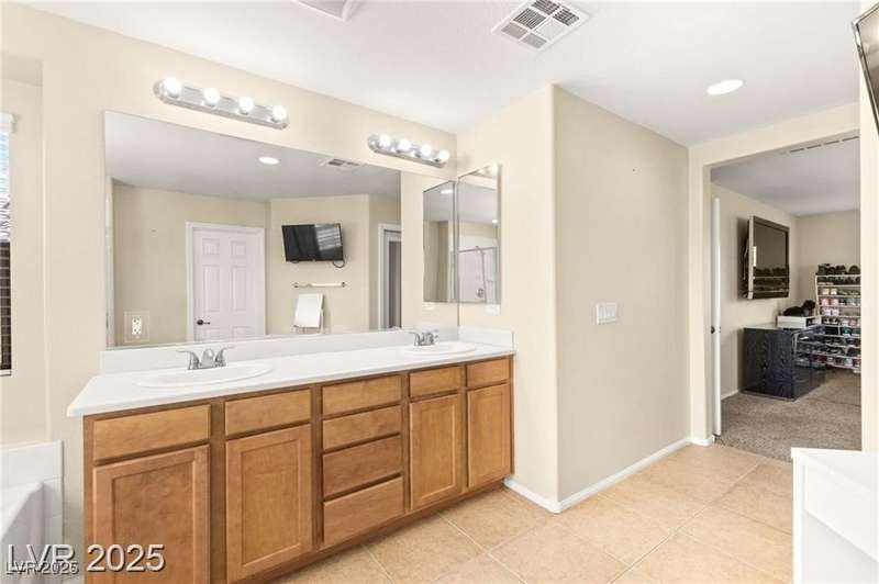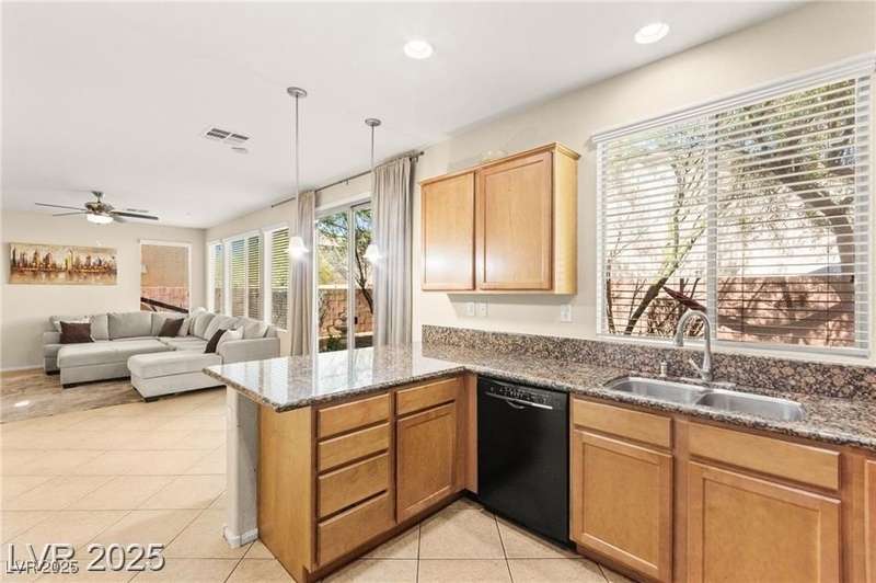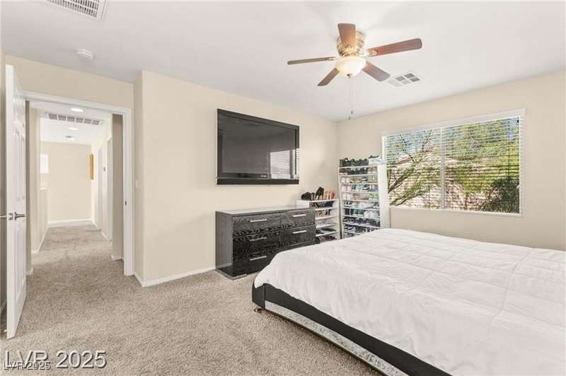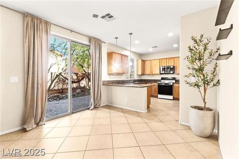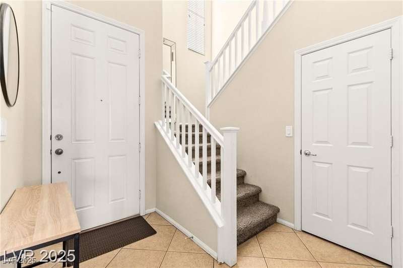 Nestled in the sought-after Mountains Edge Community, this charming 3-bedroom, 2.5-bath home offers a spacious and functional layout. The first floor features an open living room, dining area, and kitchen—perfect for entertaining. Enjoy tile flooring throughout the main level, ceiling fans for added comfort, and granite countertops in the kitchen. Upstairs, the large primary suite includes a private bath with dual vanities, a separate soaking tub, and a walk-in shower. The low-maintenance backyard provides a relaxing outdoor space with minimal upkeep. Great location close to parks, schools, shopping, and freeways—offering both comfort and convenience in a highly desirable neighborhood!