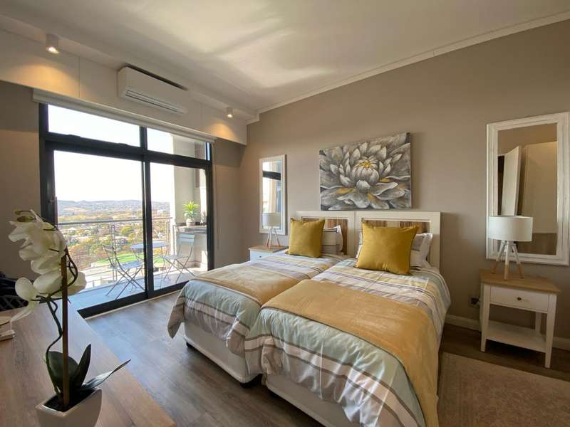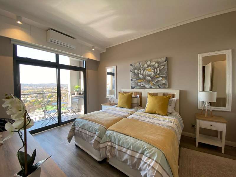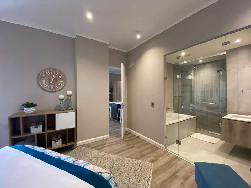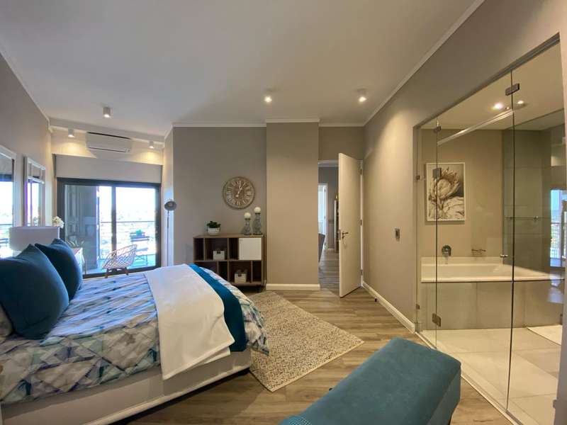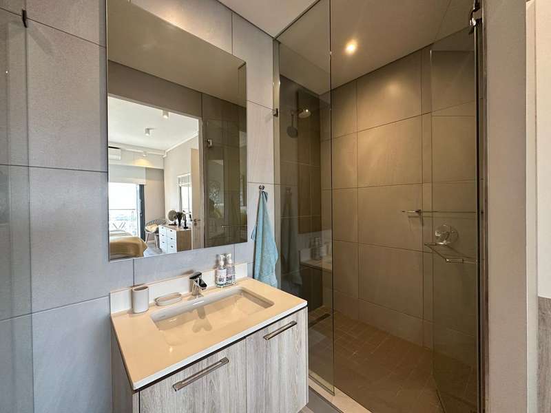 This exclusive apartment features two bedrooms, each with an en-suite bathroom. The open-plan kitchen and living areas lead out to a north-facing balcony. Trilogy also provides two basement parking spaces and access to a rooftop terrace with a private swimming pool, restaurant, and bar. With easy access to Menlyn Main and all its surrounding amenities, this apartment offers a premium living experience.