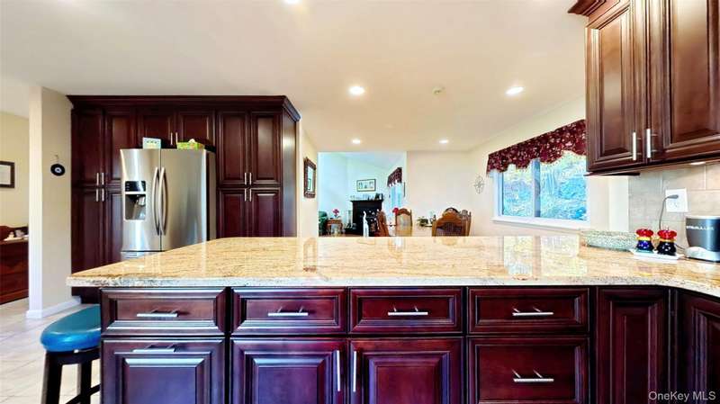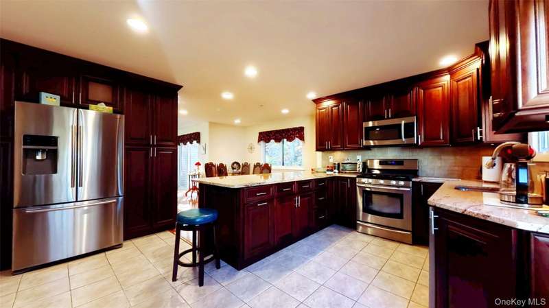 **Welcome to this beautifully maintained end-unit townhome in the highly desirable Timber Ridge community-where comfort, style and convenience converge. Featuring 3 bedrooms and 3 full baths, this home offers a thoughtfully designed layout that blends modern upgrades with natural charm. The gourmet kitchen is a standout, showcasing rich Cherrywood cabinetry, granite countertops, ss appliances, eat in kitchen plus counter seating for four. A dedicated dining area makes entertainment effortless while two oversized pantry cabinets with pull-out shelving provide smart storage solutions. The living room is filled with natural light thanks to vaulted ceilings and skylights complemented by gleaming hardwood floors and a cozy fireplace. A sliding glass door leads to a private patio with a wooded backdrop, perfect for relaxing or hosting guests. The first floor offers an updated guest bathroom, spacious bedroom plus a primary bedroom suite that includes a full bath and walk-in closet offering single level living. Upstairs, you'll find a 3rd generous bedroom, a third full bath and a bonus open den ideal for a home office or creative space. Additional features include a full basement with laundry area, ample storage and direct access to the two car garage. The home is equipped with all municipal services and natural gas fuel for added convenience. Its a great commuter location near bus stops, major highways and minutes to trains. Residents also enjoy exclusive access to* Woodbury's private recreational amenities, including "The Rez" lake, pool and *Monroe Woodbury Schools. Recent updates: Roof with transferrable warranty and Skylights replaced 2022, AC/Heat 2023, Dishwasher and Garage door/Opener 2025, and Washer/Dryer 2021 This home is a must see for buyers seeking space, style and a vibrant community lifestyle.