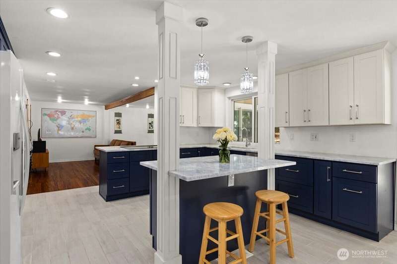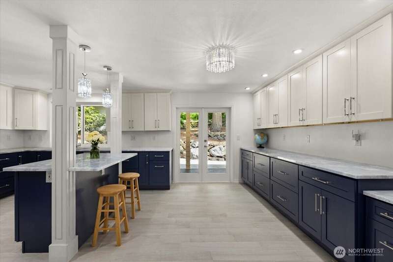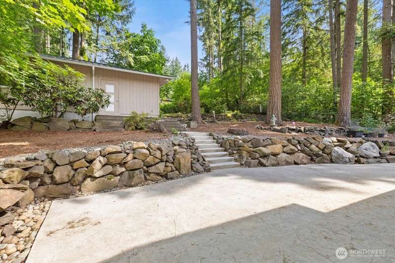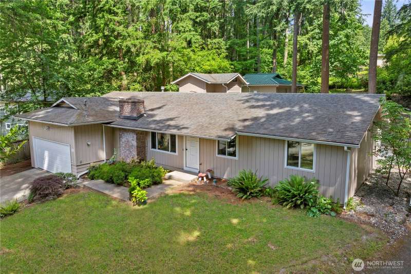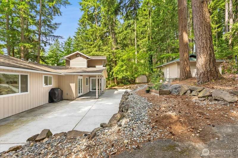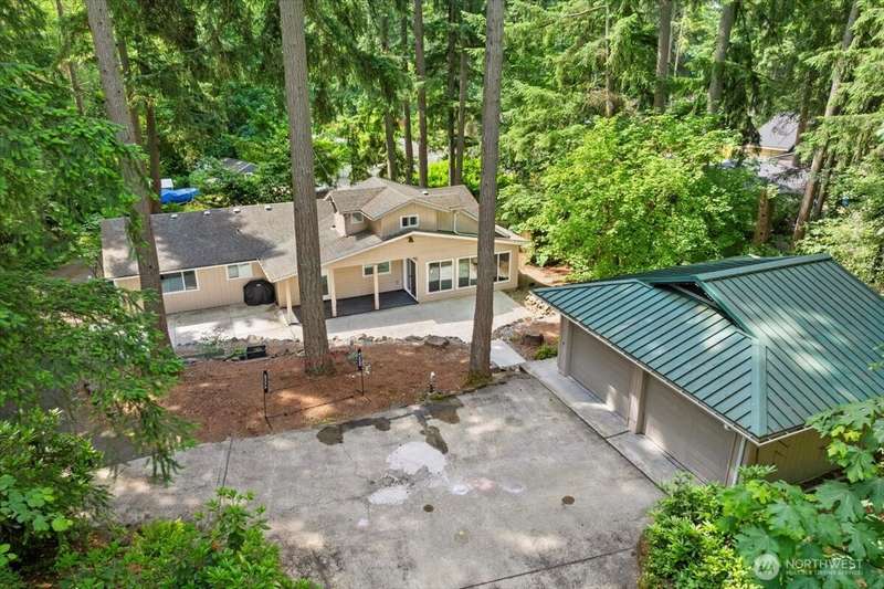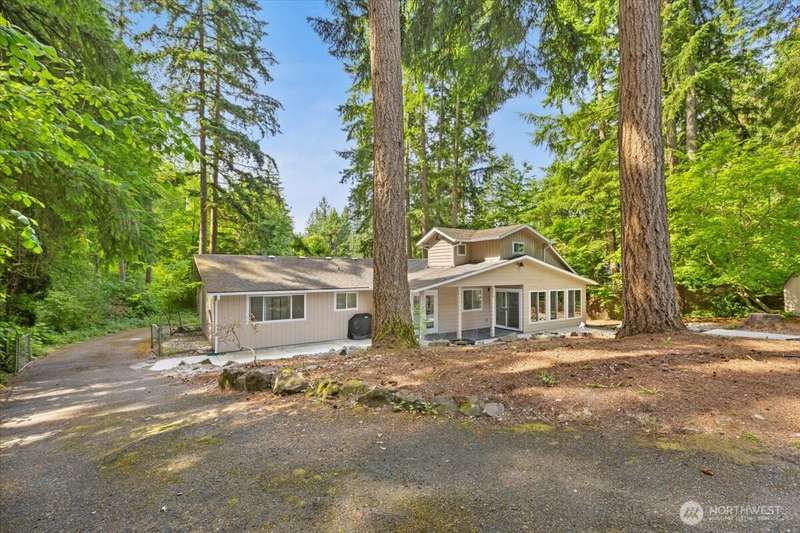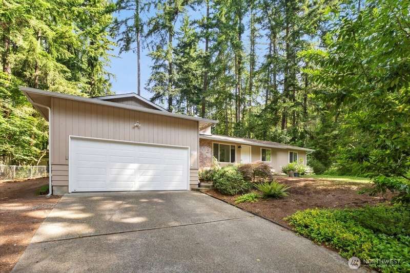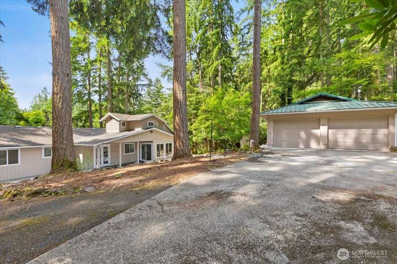 Discover one-level living with a versatile bonus loft upstairs in this beautifully designed home nestled in a peaceful cul-de-sac. Located in the award-winning Issaquah School District, this home offers an open concept layout with a chef-inspired kitchen featuring sleek finishes, a spacious island, and breakfast bar flowing seamlessly into the living and dining areas. Step outside to a covered patio overlooking lush, serene grounds. The private primary suite includes a luxurious ensuite bath. A two-car attached garage plus a second garage detached with a separate driveway provides ample parking and workspace. Surrounded by greenery, this property offers both functionality and tranquility.
