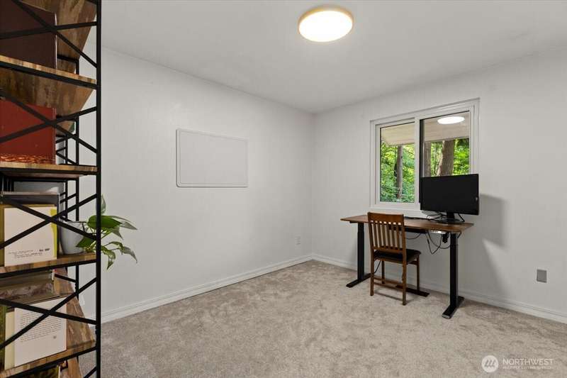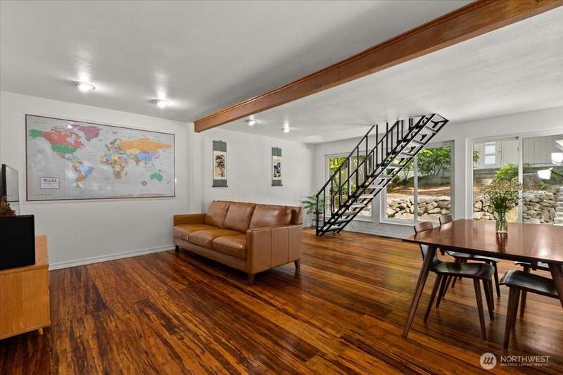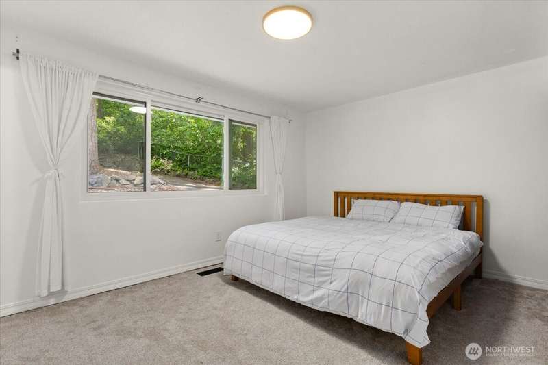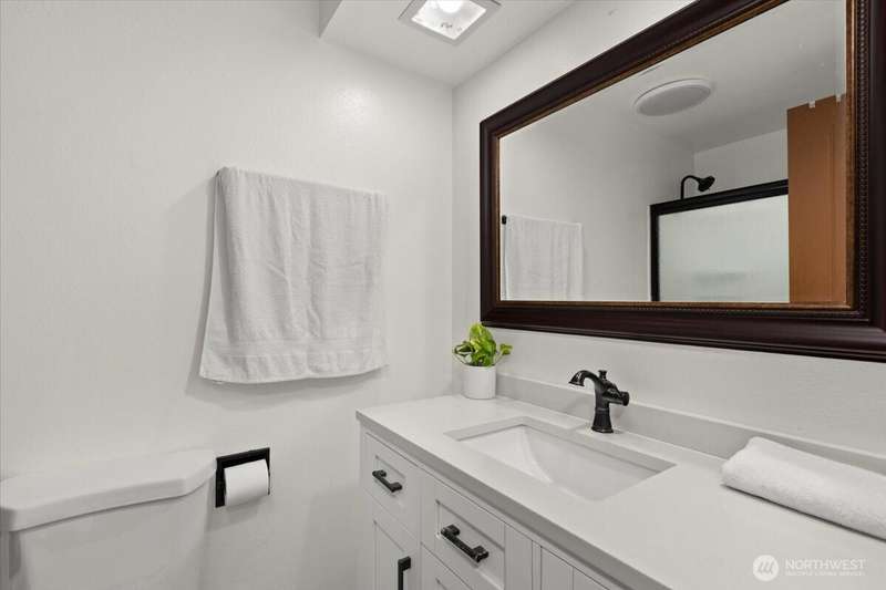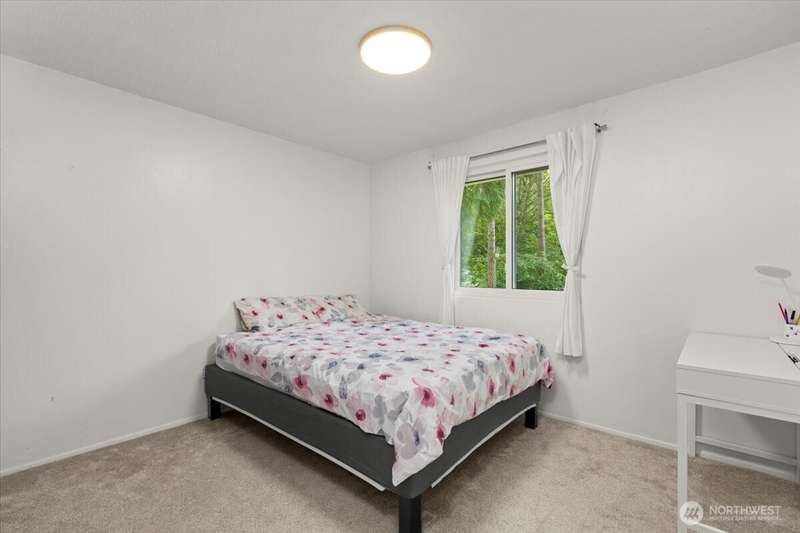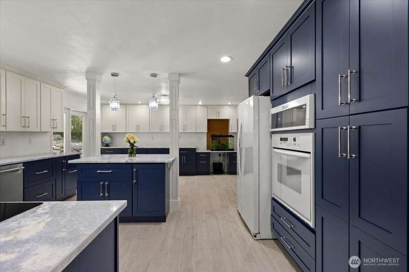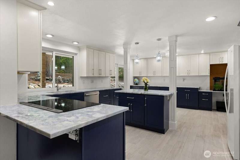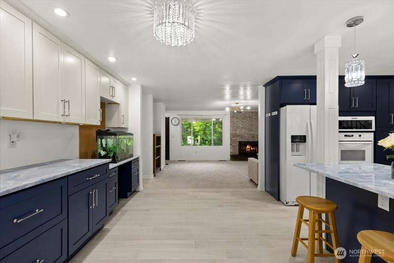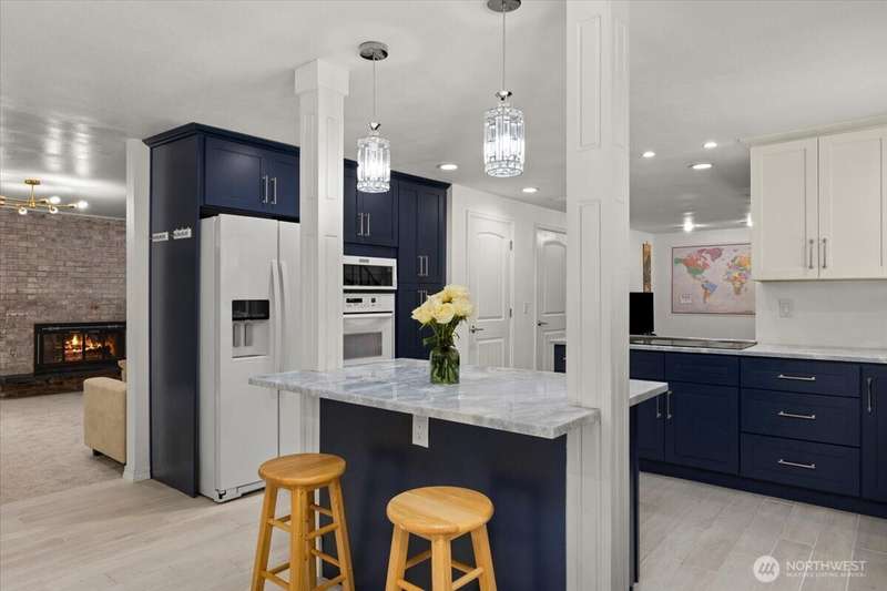 Discover one-level living with a versatile bonus loft upstairs in this beautifully designed home nestled in a peaceful cul-de-sac. Located in the award-winning Issaquah School District, this home offers an open concept layout with a chef-inspired kitchen featuring sleek finishes, a spacious island, and breakfast bar flowing seamlessly into the living and dining areas. Step outside to a covered patio overlooking lush, serene grounds. The private primary suite includes a luxurious ensuite bath. A two-car attached garage plus a second garage detached with a separate driveway provides ample parking and workspace. Surrounded by greenery, this property offers both functionality and tranquility.