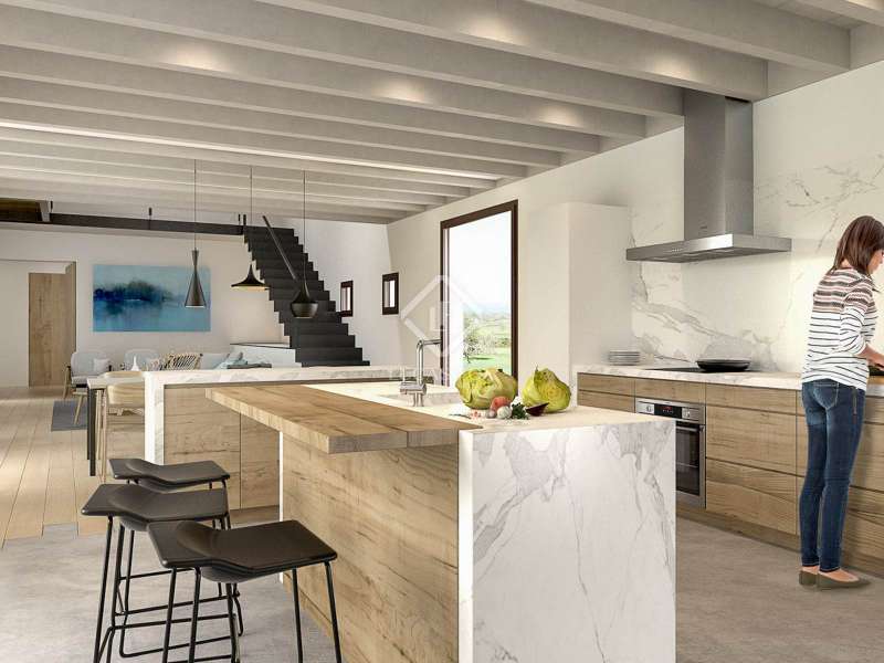 Modern estate with rustic charm in Son Prohens, just 10 minutes from Felanitx. This area offers all essential amenities like supermarkets, restaurants, bars, and a health centre. It is only 20 minutes away is Porto Colom, a vibrant coastal town with various leisure activities, sports, and Mediterranean dining options. The property sits on a 17,266 m² plot, featuring a 335 m² two-storey rustic house, surrounded by a Mediterranean garden, modern pool, and several terraces perfect for relaxing with family or friends. The ground floor includes a spacious open kitchen, large living and dining area, two en-suite bedrooms, a guest toilet, and a two-car garage. The upper floor has three more en-suite bedrooms with dressing rooms and a covered 22 m² terrace. Extras include reinforced, double-glazed windows for superior thermal and acoustic insulation, and high-quality construction materials throughout. The home is available with the option to customize or finish as desired. (Before completion) Please contact us for further details.