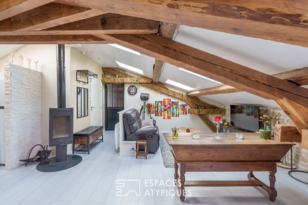 Nestled on the top floor of a small condominium in the sought-after Grand Verger neighborhood, this characterful apartment has a surface area of 53 m2 (92 m2 floor space). It has been tastefully renovated to preserve its old-world charm while incorporating modern comforts, sheltered from prying eyes and the hustle and bustle of city life.
