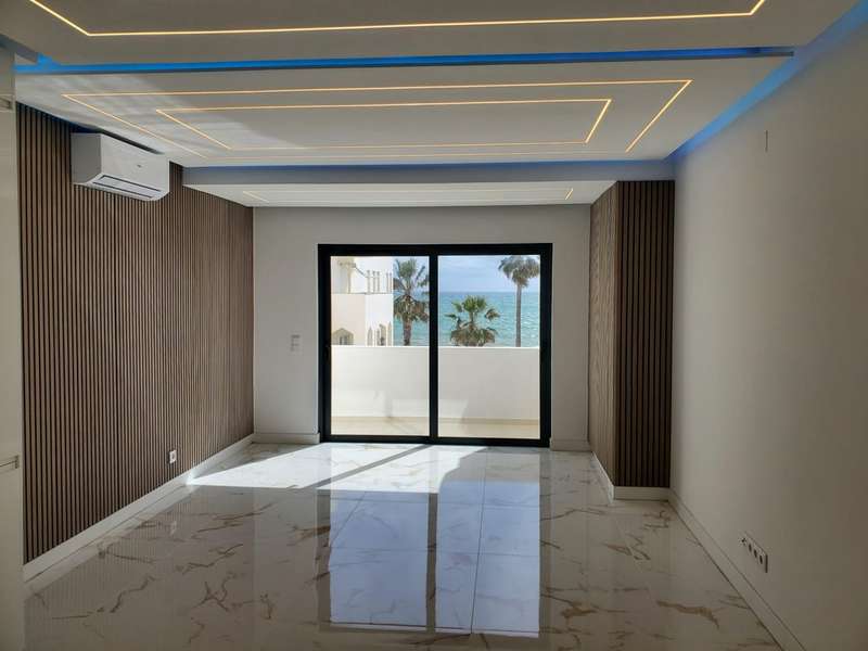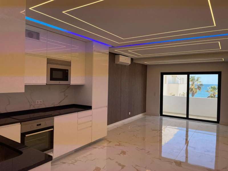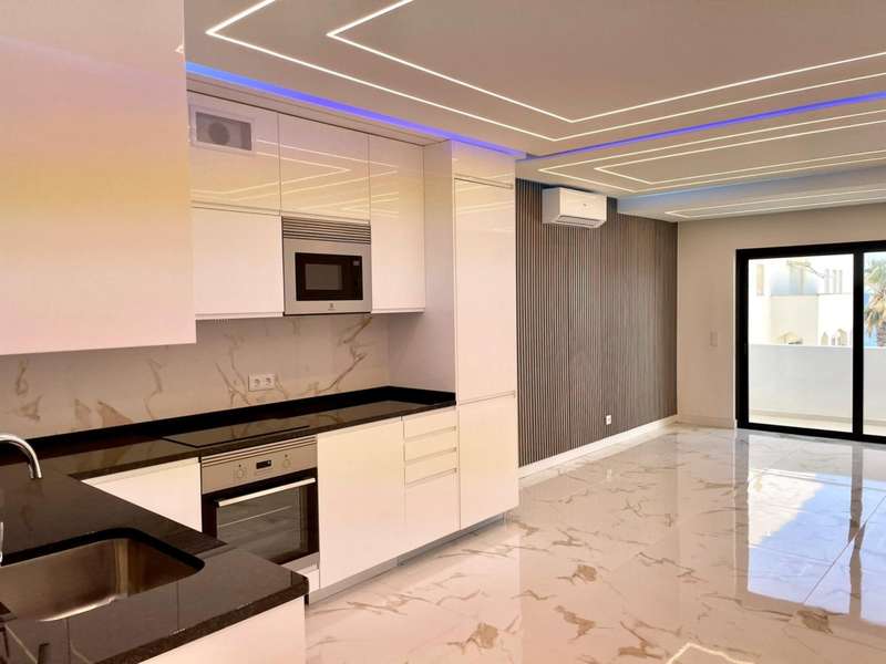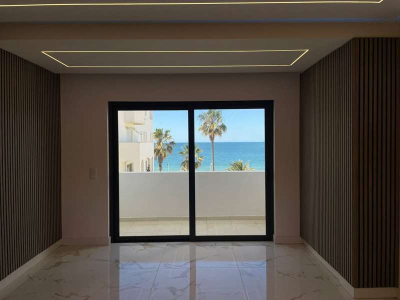 This elegant two-bedroom apartment, recently renovated with high-quality finishes , is located on the seafront , just 50 meters from Quarteira beach. With superb sea views, this property offers the perfect balance between comfort, sophistication and proximity to the sea. Facing south, the apartment enjoys excellent natural light. The open-plan living area harmoniously integrates the living and dining room with a modern, fully-equipped kitchen , creating a spacious and welcoming environment. The area extends out onto a magnificent balcony facing the sea - the ideal setting for relaxing and enjoying the typical Algarvian evenings. The private area consists of two bedrooms with built-in closets, one of which is en suite. The two bathrooms have a contemporary and functional design. To ensure maximum comfort throughout the year, the property is equipped with air conditioning. The entire refurbishment was carried out using premium materials , including floating floors, false ceilings with built-in LED lighting, pre-installation of electric shutters, and a modern home automation and security system. The apartment is located in a building with an elevator and includes a garage parking space, a large storage room and a practical additional storage space inside the house. Due to its exceptional location - close to shops, services and main accesses - this property represents a unique opportunity both as a permanent residence and as an investment with high profitability potential. A true seaside retreat in the heart of the Algarve. CHARACTERISTICS:Area: 116 m2 | 1 251 sq ft Useful area: 88 m2 | 944 sq ft Bedrooms: 2 Bathrooms: 2 Energy efficiency: D FEATURES: 2*bedroom apartment 50 meters from the beach Sea views Balcony Fully equipped kitchen Fully refurbished Modern Built-in closets Parking space Storage room