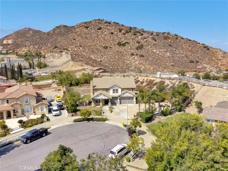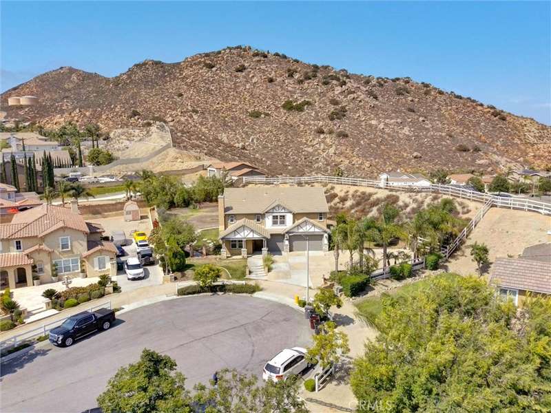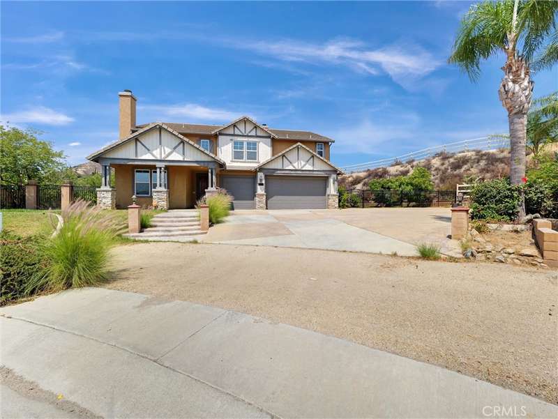 Prime Norco Hills 5 Bedroom, 4-1/2 Bathroom Home at the end of a Cul de Sac in a great Neighborhood. Picture perfect Curb Appeal, with a Four-Car Tandem Garage, and room to park an RV and multiple Vehicles. This substantial Property is on .75 acres, with plenty of room to make all your dreams come true. As you enter the Front Door, Vaulted Ceilings set the tone for bright and spacious Rooms with lots of Windows. Formal Living Room with a Fireplace - one of three in this home - and a formal Dining Room lead to the open Kitchen with abundant Cabinet Space, a huge Island, a Butler's Pantry, a Walk-in Pantry and Breakfast Nook. The Kitchen opens to a large, cheerful Family Room with a cozy Fireplace, and custom Built-in Cabinets. Beyond the Family Room is an Office Space, with an ensuite full Bathroom, which could be modified to make a 5th Bedroom. A Powder Room and Laundry Room complete the First Floor. Upstairs you will find a grand Primary Suite, with an expansive Sitting Room and another Fireplace. Two Walk-in Closets, a sizable ensuite Bathroom with a jetted Soaking Tub and dual Sinks, including a built-in Vanity, complement the space. A roomy Loft, which opens to the main upstairs Hall, and three additional oversized Bedrooms, are also on the Second Floor. Two of the Bedrooms share a Jack and Jill Bathroom, both with Ceiling Fans and Mirrored Closets. One of the rooms also has an Alcove, perfect for a Workstation or Reading Nook. The fourth Bedroom, with its own ensuite Bathroom, also connects to the Loft, which could easily function as a second Primary Suite, or a fun Playroom. This Home has so much to offer including multiple Fruit Trees - avocado, orange, tangerine, guava and more! With a desirable Location, a huge Lot, large-scale Rooms and a perfect Floorplan, the possibilities are endless. Come check out this great Property!