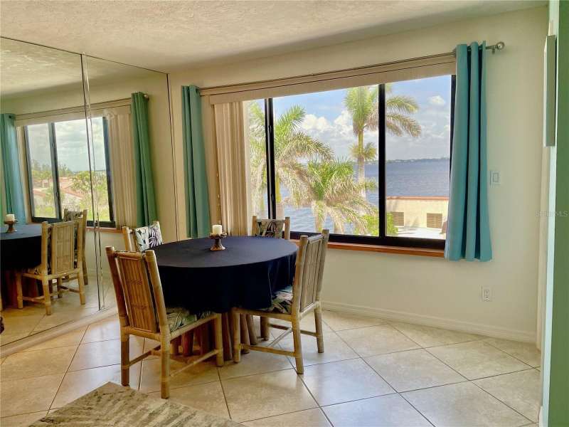 Under contract-accepting backup offers. EMERALD POINTE, Waterfront, 24 hour guard gated community with a MARINA as the centerpiece with endless activities is located in Punta Gorda; a charming little waterfront town with shops, boutiques, restaurants, historic district, 3 pools, Har-Tru tennis courts, pickleball, boating, fishing, biking and walking paths. The F Building has a new roof, freshly painted and carpeted hallways. This 3rd floor Light and bright condo with wonderful water views offers 836sf with 1 bedroom and 1bathroom and has 2 storage closets just outside the front door. There is under building parking and additional storage in front of the parking space. The Kitchen has wood cabinets, granite counter tops, stainless appliances and a large pantry. The Kitchen overlooks the spacious Great room and Casual Dining area. The views of the Peace River can be seen from the moment you step into this lovely unit. There is access to the lanai from the living area and the bedroom. The large bedroom has a slider out to the lanai that gives panoramic views of the water and community. There is also a huge walk-in closet. The stunning newly remodeled bathroom has 2 sinks, large vanity and a walk-in shower. The laundry closet is across from the walk-in closet. There are ceiling fans and tile flooring throughout. Every home has access to a boat slip. The slips vary, depending on your needs. There is great fishing and boating from your own back door. You have access to the Peace River, Charlotte Harbor, the Myakka River, the Gulf of Mexico and beyond! The community offers 2 pools, tennis, pickleball, bicycle riding, boat ramp, Clubhouse, fitness center, restaurant, several seating areas to meet friends, RV and truck storage, and many organized events. If you like to be active, you can always find something to do, or you can relax and take in the view. This is the perfect community to make it your 2nd home or live here year round. It is being sold furnished, turnkey. Come see this piece of paradise and fall in love! FYI...HOA fee dropped 6-1-25 from $780 to $709 monthly.