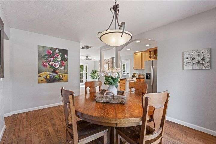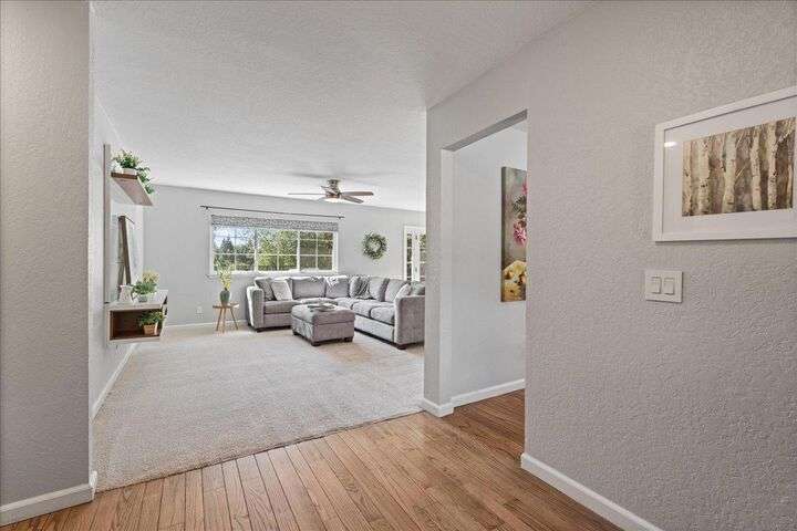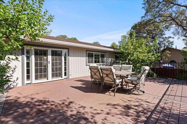 Welcome Home! Relax and enjoy evening sunsets from the expansive deck of this versatile SINGLE STORY home in the charming, established neighborhood close to the Cameron Park Golf Course. The .35 acre lot includes mature fruit trees, a large, flat rear yard ideal for play, pets and entertaining, a 2-car garage with extensive storage, plus an additional driveway with RV parking and its own gated area. Inside, you'll find beautifully refinished hardwood floors, french doors that open to the deck of your serene back yard, open and updated kitchen, 4 bedrooms, 2 bathrooms and inside laundry. Additional updates include brand new exterior paint, new gutters, tankless water heater, and low-water front landscaping. Best of all, No HOA, Mello Roos or CA Fair Plan and conveniently located for all your Sierra Foothill adventures! This home truly has it all!