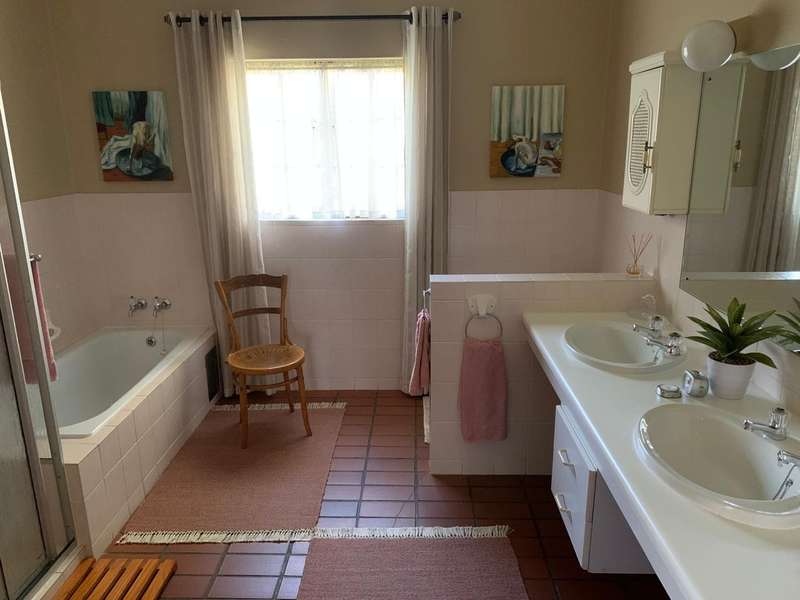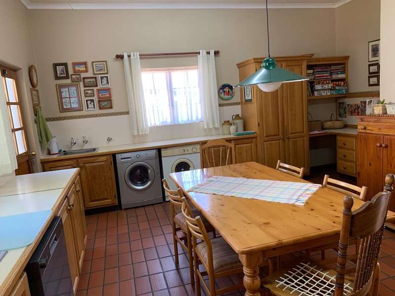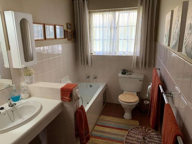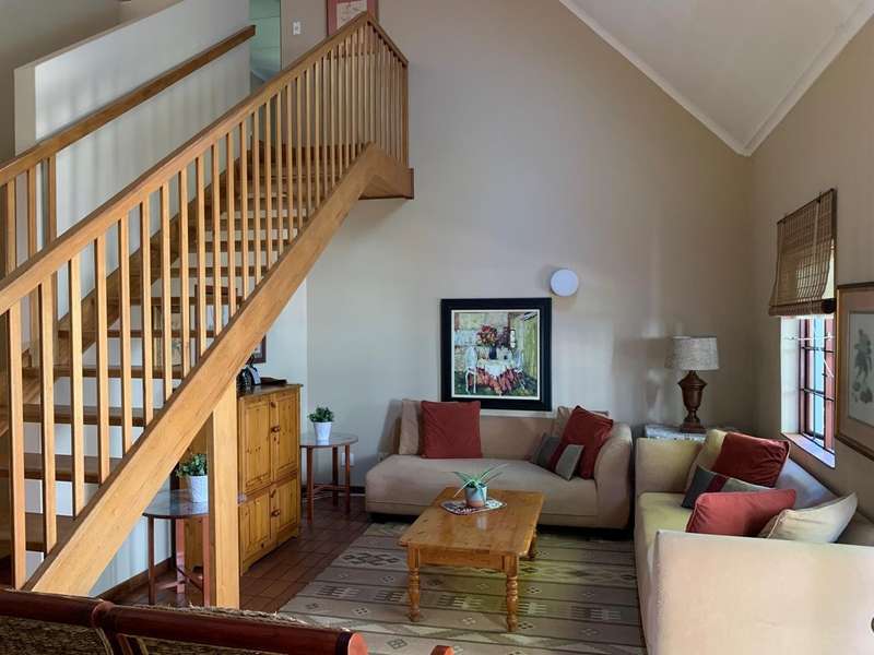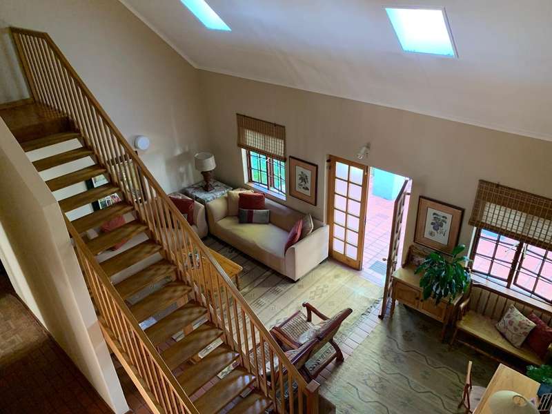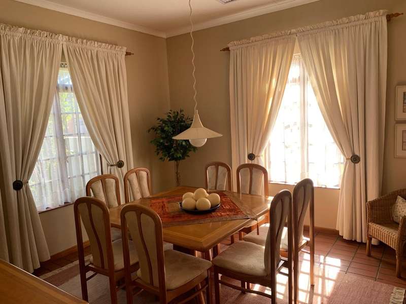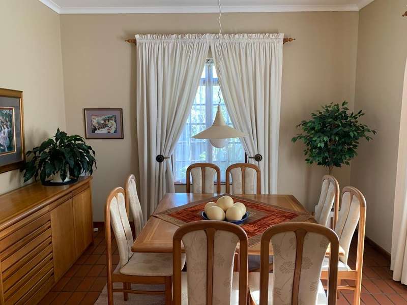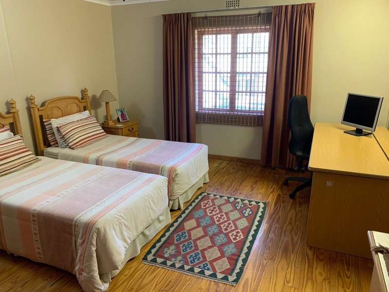 This exceptionally maintained 4-bedroom, 2-bathroom home is a true gem, offering space and a host of premium features for comfortable family living. Step into a welcoming double-volume entrance that sets the tone for the rest of this spacious home. Enjoy a separate formal lounge for private gatherings, while the open-plan TV room and dining area create a relaxed and sociable atmosphere for everyday living. The heart of the home is the spacious kitchen, offering ample cupboard space and practicality for family meals and entertaining. Upstairs, you'll find two bedrooms with built-in cupboards and warm timber flooring, a carpeted study ideal for working from home. The main bedroom situated on ground floor with ensuite complete with a luxurious double vanity. Outdoor living is just as impressive, featuring a patio with built-in braai, landscaped garden with irrigation, and plenty of room for children and pets to play. The home also offers double garages with a dedicated workspace, a double carport, and domestic quarters with a bathroom for added convenience. Security and comfort are top priorities, with features such as a security gate, alarm system, burglar bars, outdoor beams, and storage space in the attic. The Windmaster turbo extractor system ensures efficient ventilation, removing hot air and keeping the home cool throughout the year. Don't miss the opportunity to own this beautifully maintained property—designed for comfort, function, and peace of mind. Call today to arrange your private viewing!