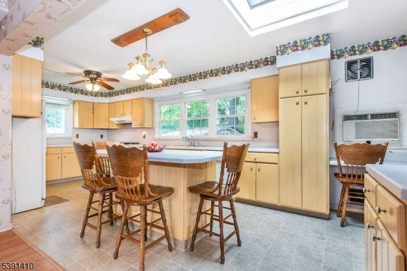 Welcome to this SPACIOUS, EXPANDED front and back dormered cape... Approx 1939sq.ft of space will satisfy all your needs...Many Upgrades over the years with features that include a LR with Wood Burning FRPL and DR that opens into a HUGE, bright and airy 23'x10' MEIK expansion with center island, tons of cabinets, counter space, SKYLIGHT plus PATIO doors to COVERED deck overlooking the PRIVATE yard...the 2nd level open space offers terrific POTENTIAL for CONVERSION to a 4th BR or REC room with office...currently features a huge closet 11'x3'...Highlights include a large unfinished walk-in attic, updated windows, baths, roof...Garage converted to convenient laundry room and added storage...this sought after location only blocks to NYC bus as well as Rt.3, 46, GSP , retail stores and restaurants. HOME WARRANTY included for peace of mind. Don't miss this opportunity!