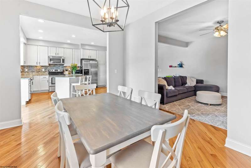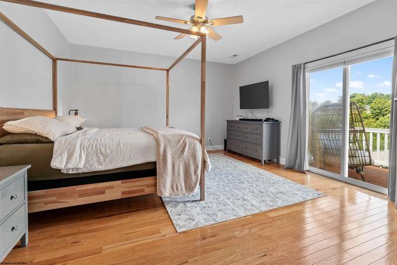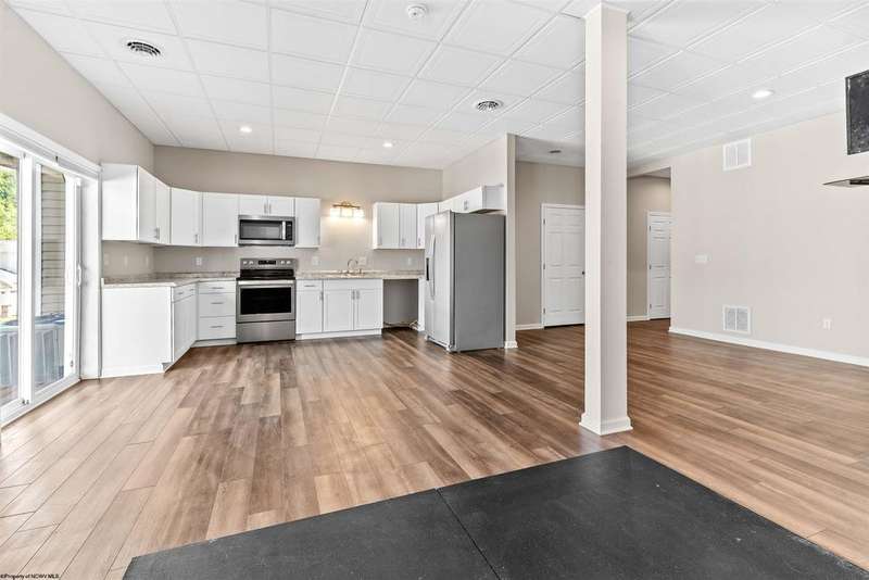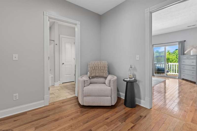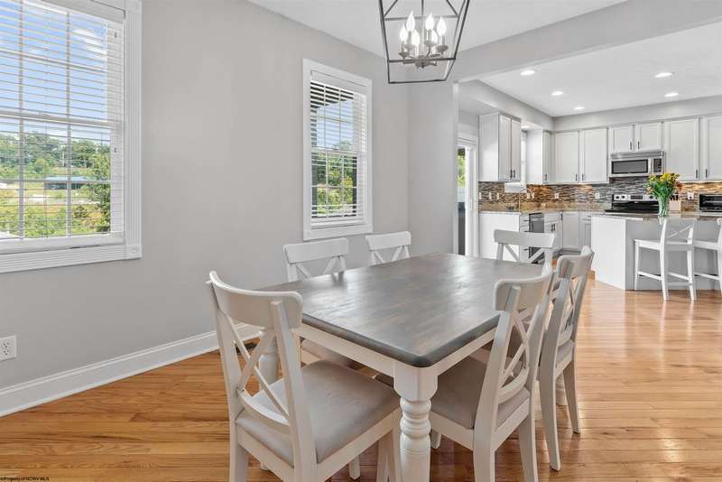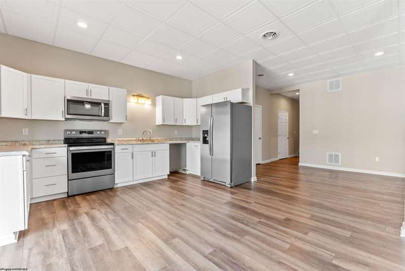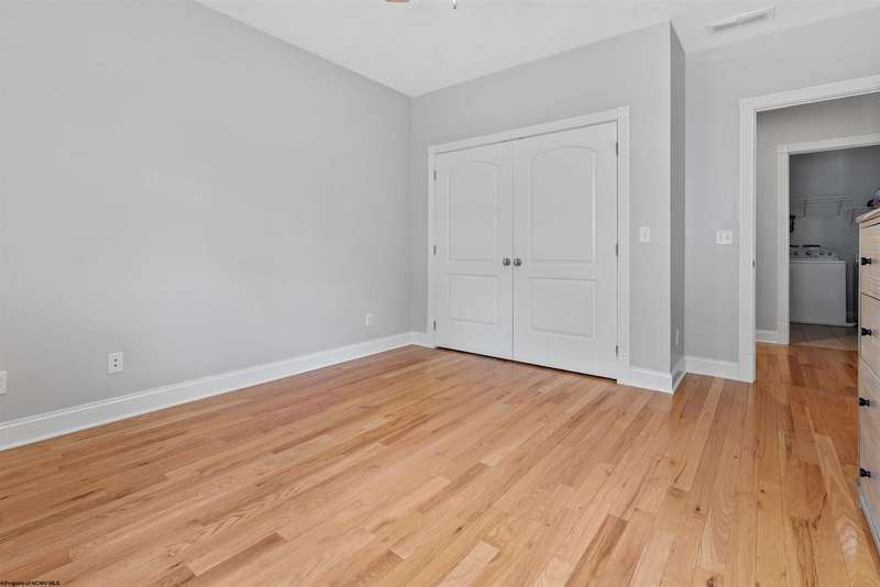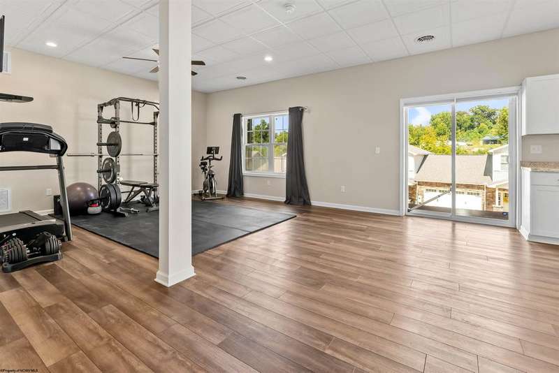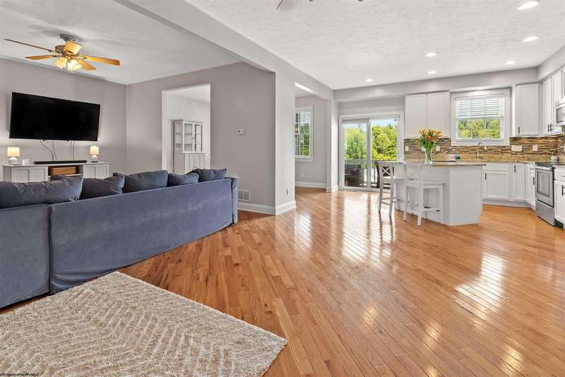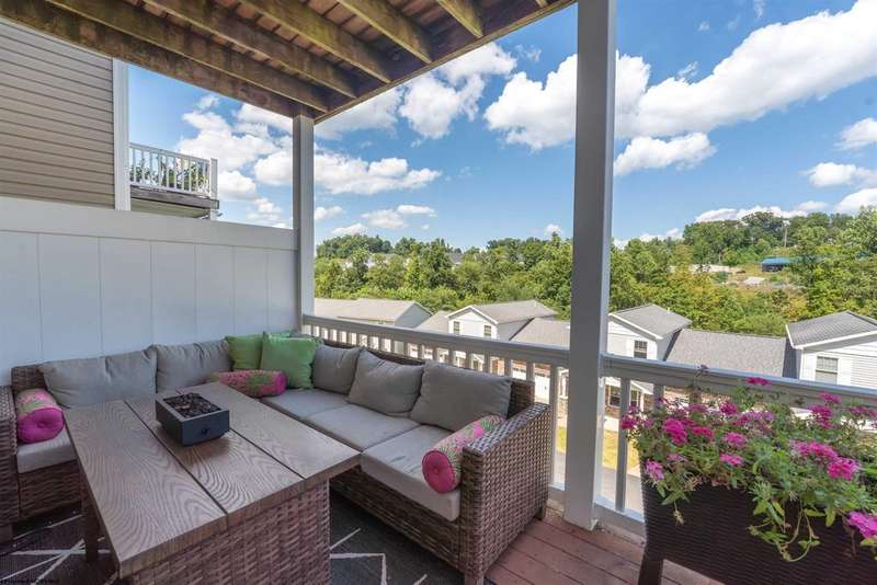 This 3-bedroom, 4-bathroom townhome is just minutes from Ruby, Mon General, and West Virginia University in a quiet location with easy access to I-68/I-79. 9ft+ ceilings throughout and real tongue-and-groove wood floors highlight the charm and quality that prevail throughout this property, making it a luxury-style townhome with little upkeep. The main level features semi-open concept layout with a living room that surrounds a gas fireplace. The kitchen is styled with granite countertops, under-cabinet lighting, an island with bar and is gas range ready. Adjacent to the kitchen is a large deck for outdoor dining with expansive valley views. A semi-formal dining area sits across from the kitchen and living spaces. On the second level you'll be greeted by a large landing, a utility room, full bathroom and three spacious bedrooms with oversized closets and windows. The primary bedroom features an ensuite and attached deck large enough for a complete patio set or snoozing under the stars. The true centerpiece of this property is the fully finished basement with attached deck, complete with a kitchen, utility room, office, full bathroom and two spacious multi-purpose rooms complete with oversized closets.