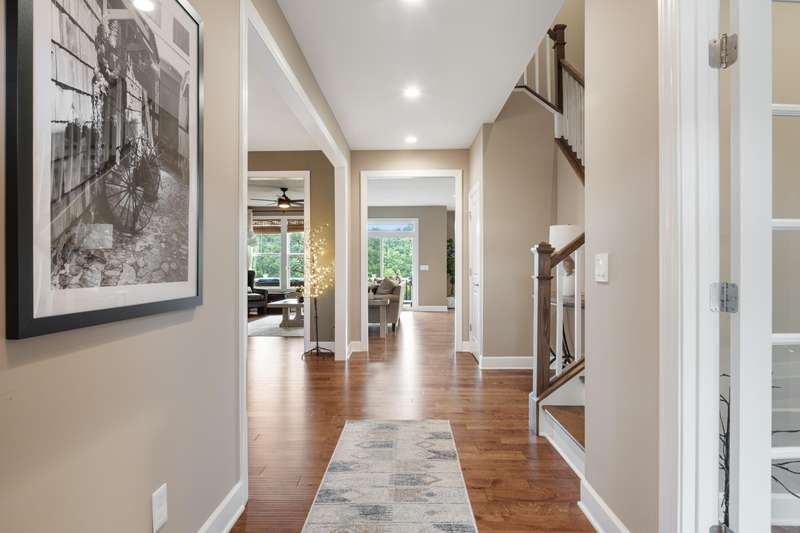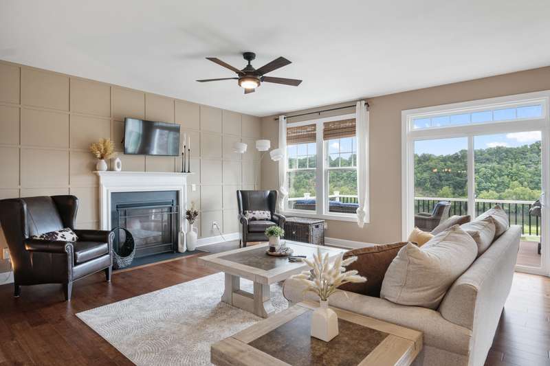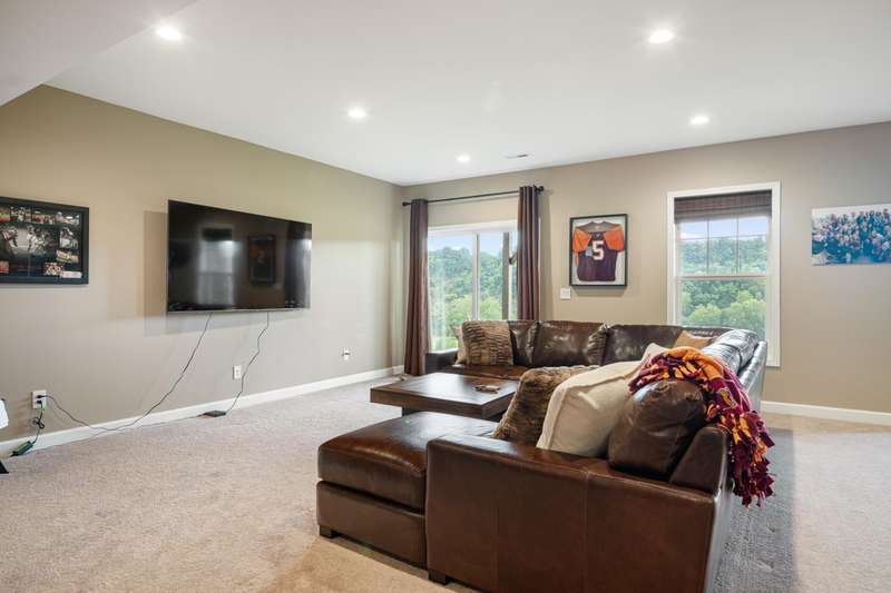 Located in the desirable Herons Landing community in Radford, VA, this custom 5-bedroom, 3 full + 2 half bath home offers refined living with sweeping, year-round views of the New River from every level. Thoughtfully designed with 9-foot ceilings throughout, the home features an open-concept main floor with hardwood floors, a chef's kitchen with custom cabinetry and high-end finishes, a generous dining area, and a comfortable living room with a gas fireplace - perfect for relaxing or entertaining. A private study provides an ideal work-from-home retreat. The walk-out basement includes a spacious living area, billiard room, wet bar with wine cooler, and additional unfinished space for storage or a home gym. Just minutes from Blacksburg and Christiansburg, this exceptional property offers a rare combination of comfort, functionality, and convenience in one of the New River Valley's most sought-after neighborhoods.Don't miss this rare opportunity! Call to schedule your private tour today!