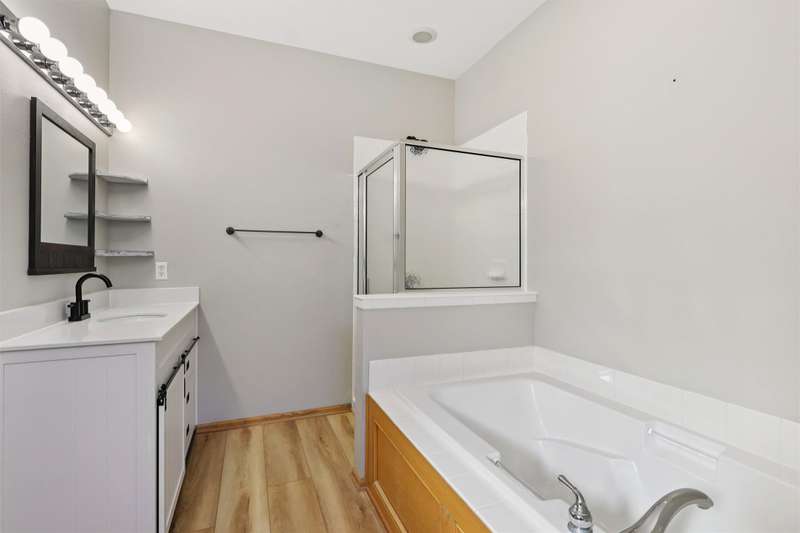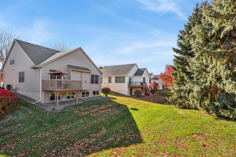 Blending the best of Ranch & 2-Story living, this stunning 1.5-story detached Townhome (NO shared walls) offers over 3,300 sq. ft. of finished space with 45 bedrooms and 4 bathrooms. Perfectly situated in a desirable location with lawn care + snow removal included, this home provides comfort, convenience & style in one package. Step inside to find upgraded flooring throughout the main level, a beautiful kitchen with granite countertops, RO water system & refreshed bathrooms featuring new vanities. Enjoy your morning coffee on the inviting covered front porch or relax in the spacious main-floor primary suite for effortless, single-level living.The finished daylight lower level expands your living space with a large family/recreation area, an exercise room (which can serve as a fifth bedroom or hobby space), 3/4 bathroom & an abundant storage to keep your belongings organized & protected. Meticulously maintained, professionally cleaned, & move-in ready, this home also includes all appliances & a radon mitigation system for peace of mind. Quick closing available & pets are welcome. Simply turn the key & make this your next home!