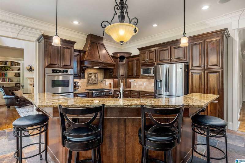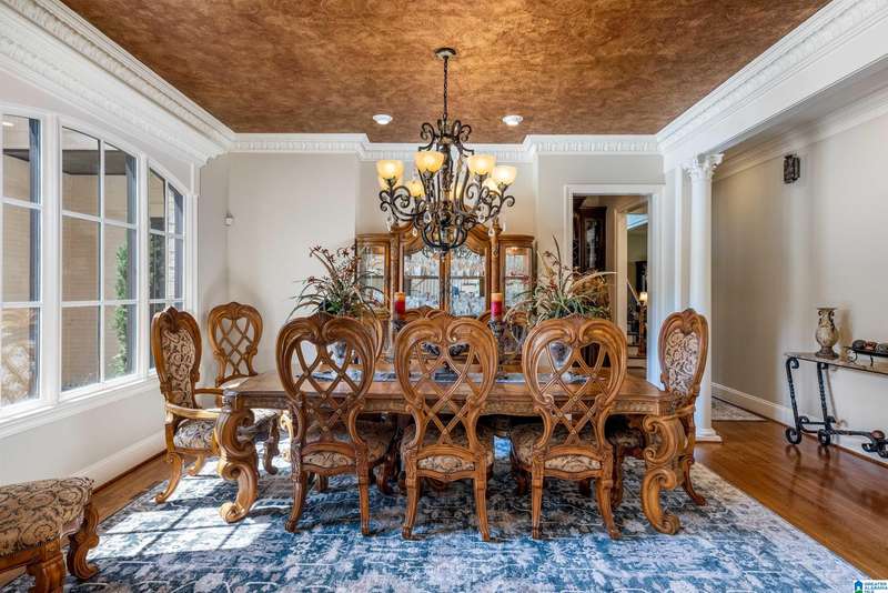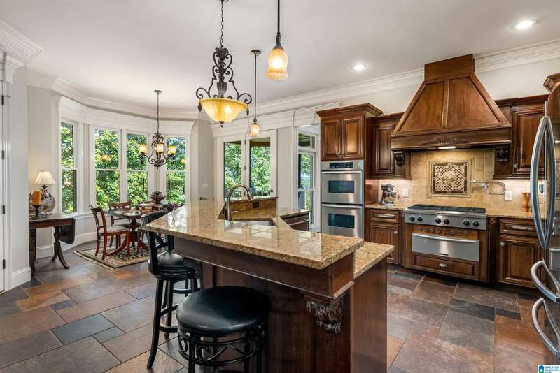 Welcome to Ross Bridge! Enjoy the pinnacle of luxury living with this spectacular home, ideally situated right off Tee 2 of the award-winning Robert Trent Golf Course. This stately residence boasts over 6,000 sq ft of main living area and an in-law suite, offering a prestigious estate. The home features two staircases, multiple fireplaces, custom moldings, and intricately hand-painted ceilings. The gleaming hardwood floors, exquisite travertine and slate floors, and imported Italian granite throughout add to the elegance. The gourmet kitchen is equipped with top-of-the-line appliances, perfect for any culinary enthusiast. Enjoy the outdoors with multiple porches and patios featuring archways and slate floors that overlook the golf course. A private courtyard off the master bathroom adds to grandeur. Indulge in resort style amenities just steps away from your door, restaurants, pools, parks and walking trails. BRAND NEW ROOF, NEW EXTERIOR AND INTERIOR PAINT just completed in June 2024!