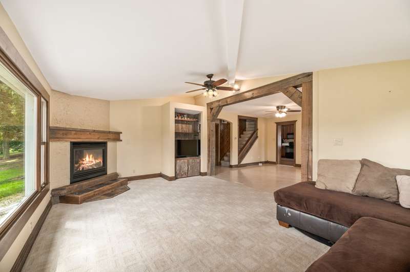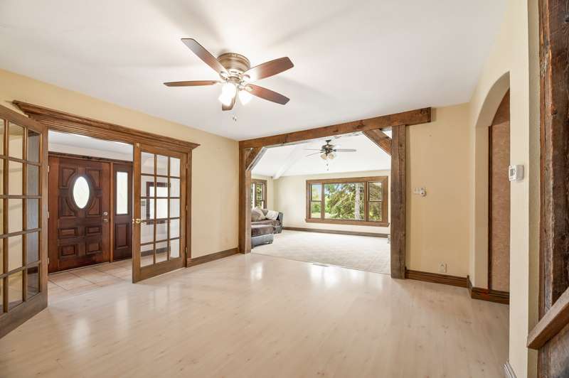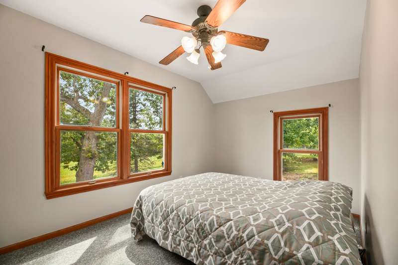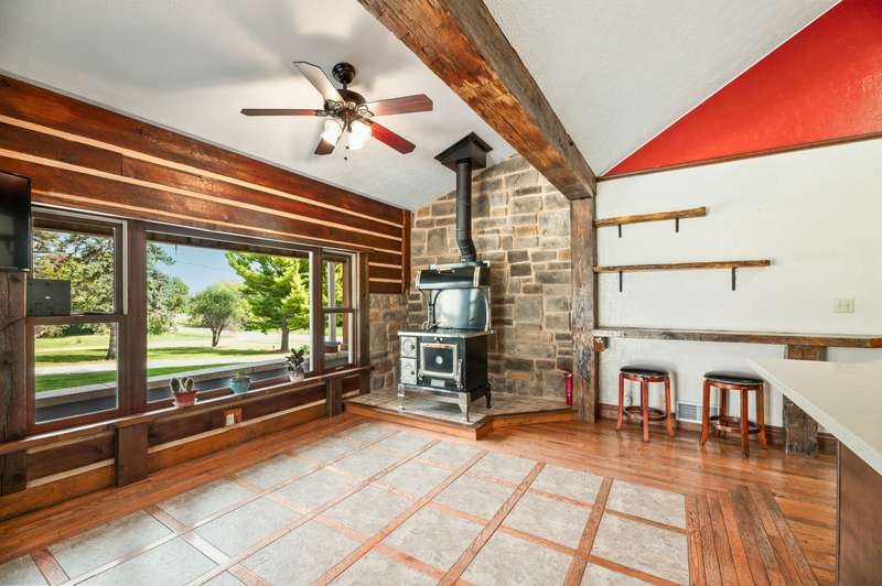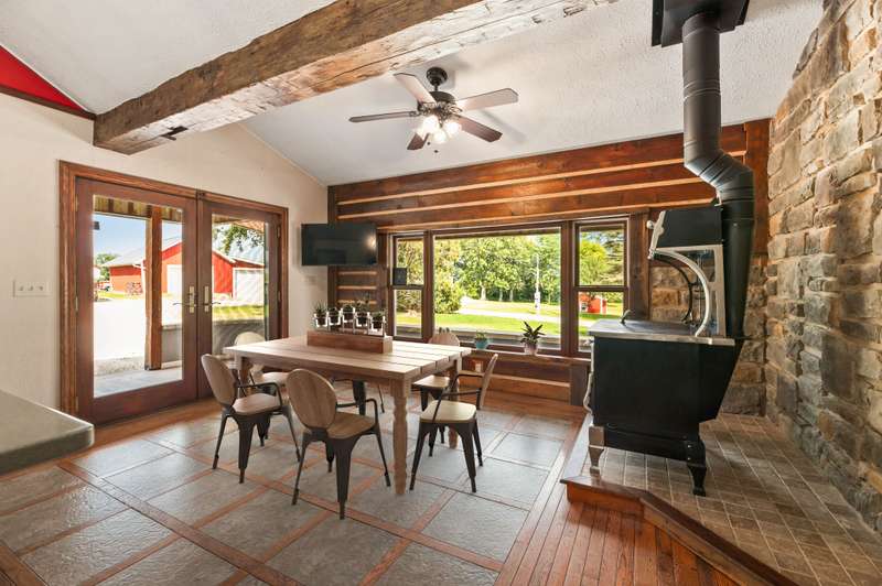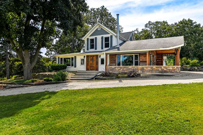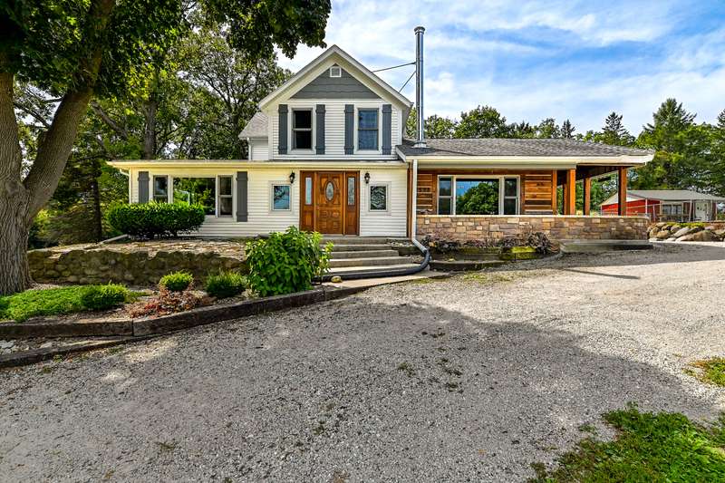 Nestled on nearly 8 picturesque acres, this exceptional hobby farm blends timeless character with modern comfort. A classic farmhouse, thoughtfully updated, anchors the property with 4 spacious bedrooms, including a main-floor Primary Suite with a private bath. The home offers a brand new roof, gutters, downspouts, fascia and new siding. The heart of the home is a huge, welcoming kitchen, complete with hardwood floors, updated granite countertops, and a vintage wood stove. perfect for gatherings large or small. Entertain effortlessly with expansive living spaces, including a formal dining room that opens to a four-season porch offering serene views of a yard frequented by deer and turkey.The cozy great room features a corner gas fireplace, ideal for chilly evenings. Step outside to enjoy a covered front porch, or head to the backyard where you'll find a 20x20 pool house with a new roof (2024), new fascia gutters and downspouts and a 40x20 in-ground pool, creating the perfect summer retreat. For hobbyists and homesteaders alike, the outbuildings are a dream: A 90x70 pole building provides ample space for equipment, vehicles, or toys.A 30x30 barn/workshop is ideal for projects or storage and jut had a new roof installed gutters and downspouts with electricity. A 16x12 shed adds even more utility and a 2024 roof.