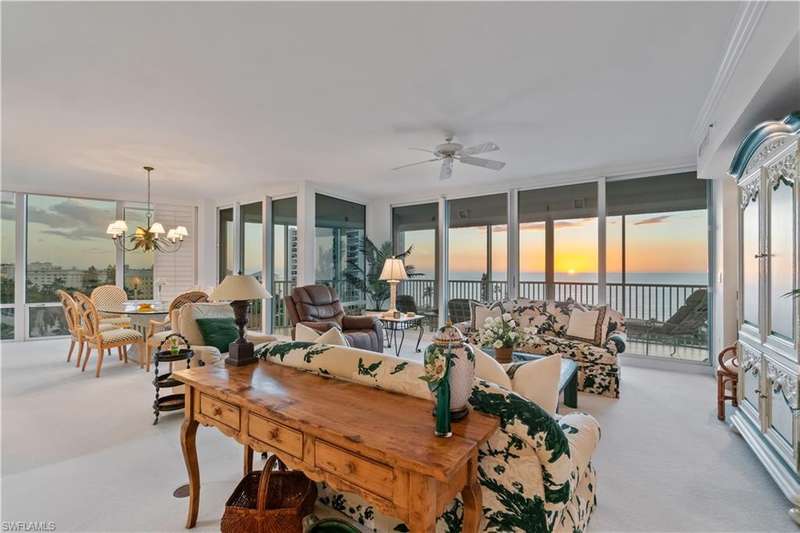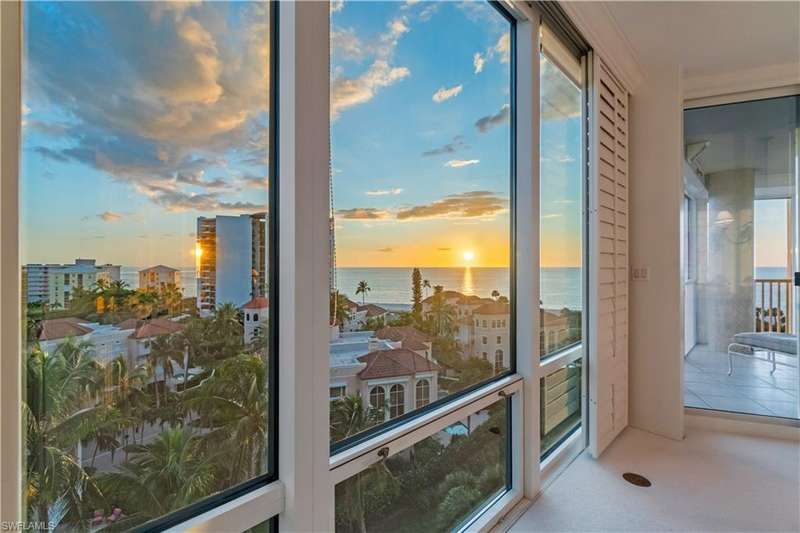 Indulge in the best of Naples beachfront living at the prestigious Le Ciel Venetian Tower in Park Shore, where timeless sophistication meets panoramic Gulf views. Rarely available and highly sought-after, this 02-stack residence captures endless sunsets from its west-facing lanai, offering the perfect vantage point to unwind in luxury. With over 2,500 square feet of living space, this 3-bedroom, 3-bathroom condominium showcases floor-to-ceiling windows that flood the interiors with natural light and highlight the coastal horizon beyond. The spacious primary ensuite features serene Gulf vistas, dual his-and-hers closets with generous storage, dual vanities, and a separate tub and shower. The thoughtfully designed layout offers a kitchen with ample space for entertaining, an open living and dining area, ensuring comfort and privacy for guests. A south-facing balcony provides a tranquil retreat to enjoy gentle breezes and the twinkle of city lights over Venetian Bay. Additional features