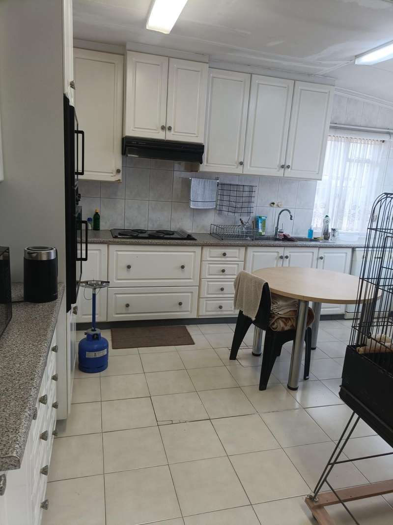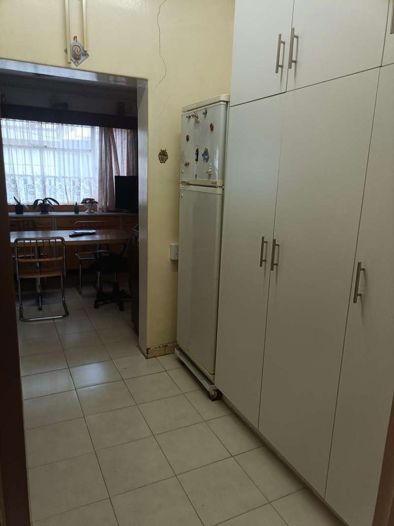Spacious family home with a lot to offer. It offers entrance hall which leads to a spacious lounge (carpeted) with pressed ceilings, 3 bedrooms, 2 with built in cupboards and wooden floors, main bathroom with bath, shower, basin and toilet, 2nd bathroom with shower, basin and separate toilet. Beautifully fitted kitchen with melamine cupboards, solid plate stove, eye level oven (tiled) with separate scullery. Study can be used as 4th bedroom.
