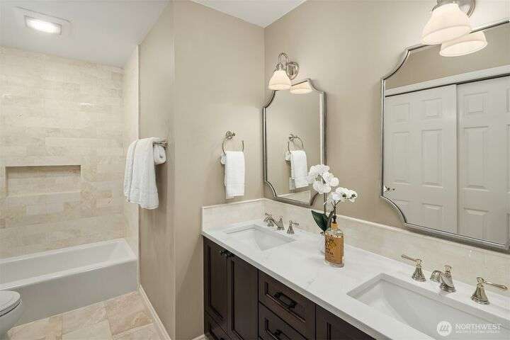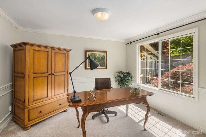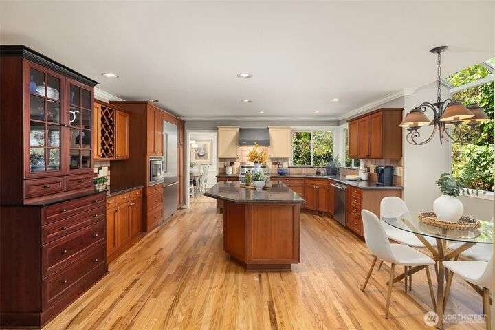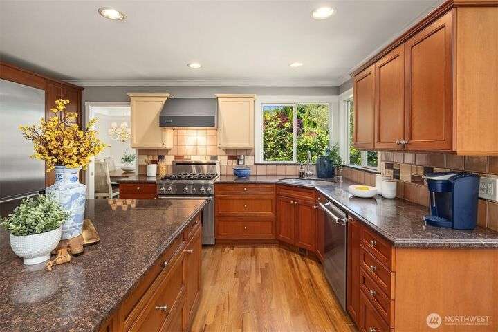 In enchanted Claremont stands a noble abode, not too grand, not too humble, just right. With soaring ceilings & refinished hardwoods, it hums, “Welcome, dear friend, to your happily ever after.” At its heart, the expansive kitchen & family room host waffles, laughter, & weekend gatherings in perfect harmony. Three plush bedrooms promise sweet dreams, while a loft-style fourth offers a secret nest perfect for visiting royalty or a whimsical creative hideaway. Bathrooms shimmer with marble tile and soaking tubs fit for mermaids seeking royal respite. Below, a rec room & flex space await play or study. Step outside onto the private deck where morning coffees, evening toasts, or imaginative backyard adventures unfold beneath whispering trees.