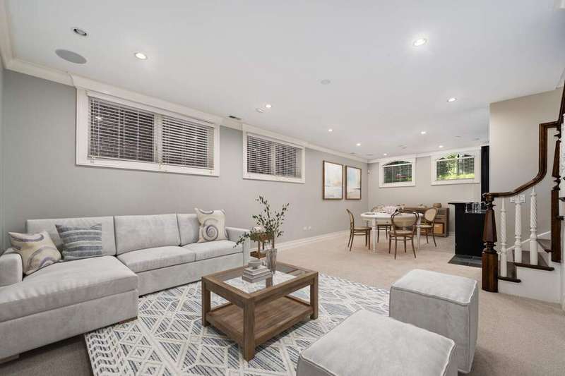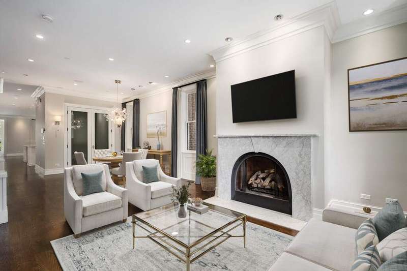 Recently built like new custom home on this fabulous Lincoln Park block near DePaul and Oscar Mayer School. The finest of finishes throughout. Spacious and open front living and dining rooms face west for amazing light and feature a beautiful marble fireplace and a large temperature-controlled wine cellar. The all-white kitchen offers a huge island, breakfast bar, built-in banquette, Subzero refrigeration and all high-end appliances. The adjacent great room has bookshelf built-ins, an additional fireplace, and opens onto a back deck through both double doors as well as the quintessential mud room with a bench and coat storage. Direct access to the garage and garage top roof deck are also found here. The primary suite offers a separate sitting area. The luxurious marble bath offers a separate tub, shower, double sinks, plus fantastic custom closet space. Two additional bedrooms, each with their own bath, plus laundry complete this floor. The penthouse level family room has a beautifully built out wet bar and opens onto an east facing rooftop terrace with an outdoor fireplace. There is an additional guest suite on this level, and a skylight brings in the best light. Perfect for entertaining, the lower level has a full-sized bar, huge recreational room, and two additional bedrooms and full bath. A second laundry center and wonderful storage complete the lower level. Walk to the best that Lincoln Park has to offer including fabulous restaurants, shopping, and public transportation!