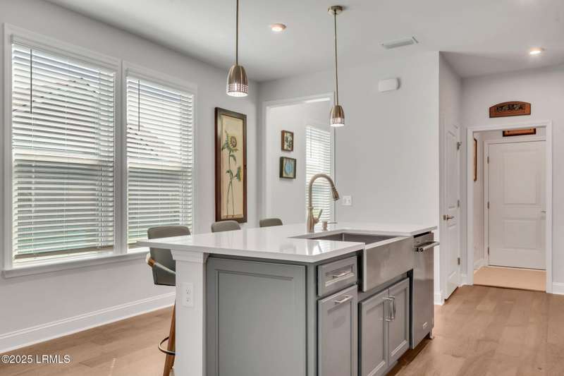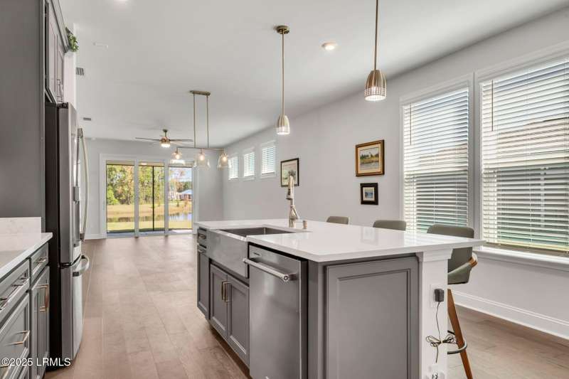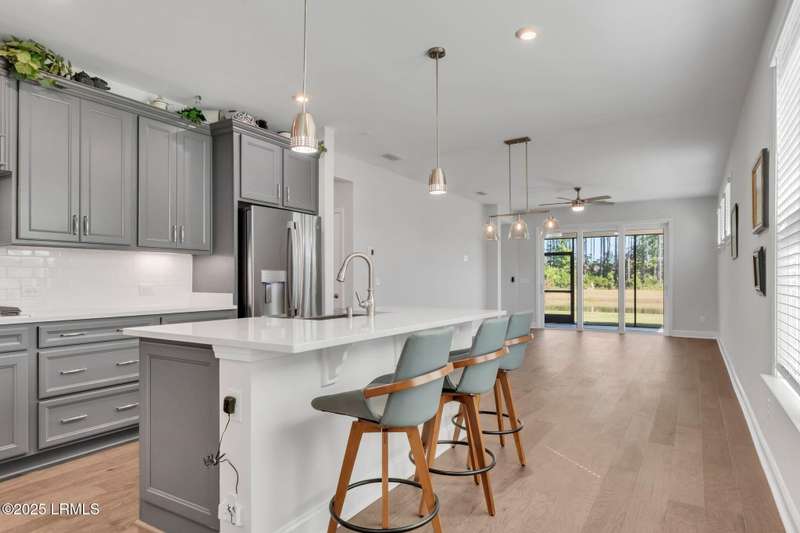 Skip the wait for new construction with this nearly new Hallmark Loft model (less than one year old and under warranty) located in Sun City Hilton Head's newest West side neighborhood. Designed with the latest finishes and coastal-inspired colors, this home enjoys premium water-to-woods view. Start your mornings on the screened porch with coffee in hand, mesmerized by South Carolinas coastal birds. Open the stackable sliding doors to blend indoor and outdoor living, and enjoy the airy open floor plan. The gourmet kitchen is a chef's delight, featuring a gas cooktop, walk-in pantry, roll-out drawers and quartz countertops. The thoughtful split-bedroom layout places the primary suite in one corner and a guest bedroom in the opposite, ensuring privacy for all. A versatile flex room offers space for an office, den or additional bedroom. Upstairs, you'll find a spacious bonus area ideal for your long-awaited retirement hobbies or a TV room, along with a storage room and a private guest suite. Built for comfort and efficiency, the home includes natural gas heating, cooking, and a tankless water heater. Just blocks away, the brand-new Amenity Center is nearly complete, offering indoor and outdoor pickleball and tennis, a running track, and a resort-style pool with private cabanas, an amphitheater, and food and beverage service. End the day where you began...relaxing in your outdoor space, savoring the lifestyle of this vibrant active-adult community.