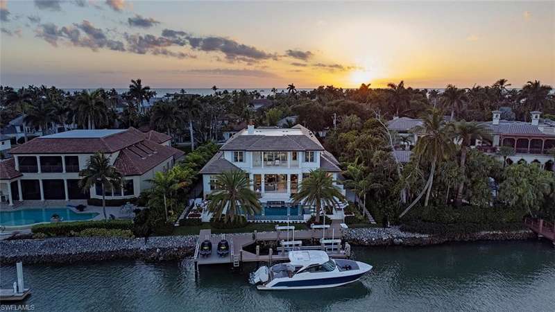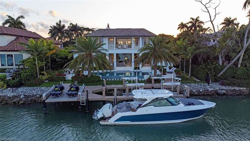 Enjoy sprawling wide water vistas of Doubloon Bay from this Stofft Cooney penned and Ficarra Design Associates conceived home situated just a short walk away from the coveted private Cutlass Cove beach club access. Completed and originally sold in 2022, this timeless and truly stunning home has been impeccably maintained by the current owner and is available for immediate occupancy. Residence offers ultrafast Gulf access, just over 6,200 sq/ft of air conditioned space, and includes 6 bedrooms, den, upper lounge, 3 car garage, and new dockage with 32,000lb and 7,500lb lifts. Home was built with the highest standards and finishes in mind including full concrete construction with upper poured concrete flooring system, Travertine, marble, and wide plank oak wood flooring throughout, Weiland lift and slide door systems, Ruffino cabinetry, Cristallo counter tops, temperature controlled wine room with back lit quartzite feature, custom designed vent hoods, 3 fire features, generator, and add