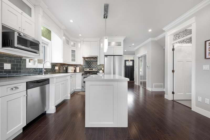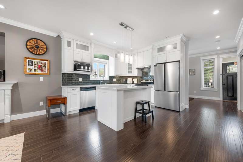Pride of ownership shines in this beautifully maintained 4-bedroom, 4-bathroom home, lovingly cared for by the original owners. The heart of the home is the gourmet kitchen, featuring granite countertops, classic shaker cabinets, and a brand-new refrigerator, along with a gas hookup for the serious home chef. The open and functional layout is perfect for everyday living and entertaining, while central A/C ensures year-round comfort. The detached double garage plus parking for 4 additional vehicles — 6 total spots — makes this home ideal for families, guests, or extra storage. A 1-bedroom suite with separate entry offers flexibility, for extended family or as a mortgage helper. The home is steps to a beautiful park, close to all levels of schools, shopping, transit, and major highways.
