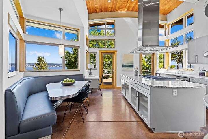 Exceptional Laurelhurst 1.17 acre Lake Washington waterfront estate w/155’ of prime frontage! 6,488SF 5BR 5.5BA home w/elegant atrium entry w/standing granite stone, barrel ceilings & walls of windows w/sweeping views of the sparkling waters of Lk WA, Mt Rainier & the Cascades, & golden sunrises from nearly every room. 2000 built one-of-a-kind masterpiece w/unique spaces & NW wood finishes, expansive view decks & patios, & 4 car garage. Arboretum-like grounds w/mature plantings & winding walkways to level lakeside gardens, walk-in cove & 95’ private dock on 2 lots. A+ location near Laurelhurst Beach Club, U-Village & easy commute to Seattle & Bellevue. Don’t miss this rare opportunity to own one of the great Laurelhurst waterfront retreats!