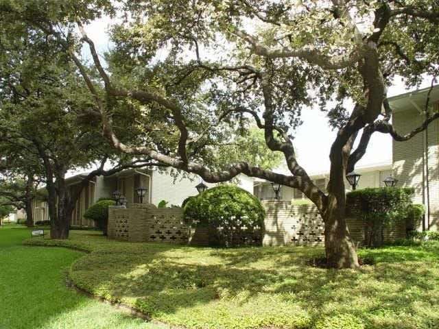 Mid-Century Modern Vibe 'Behind The Pink Wall'. Sandwiched between the Park Cities and Preston Hollow, and positioned between the Dallas North Tollway and I-75 (Central Expressway). Be downtown in 10 minutes. Near major shopping in every direction, there are grocery stores, University Park Library across the street, a dozen banks, and countless dining options are within walking distance. Beautifully landscaped grounds with large, mature oaks and colorful plantings. Pet friendly neighborhood!