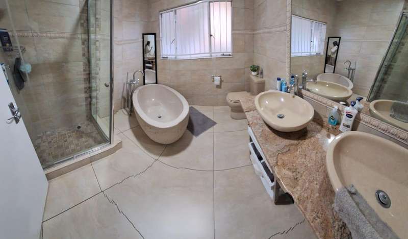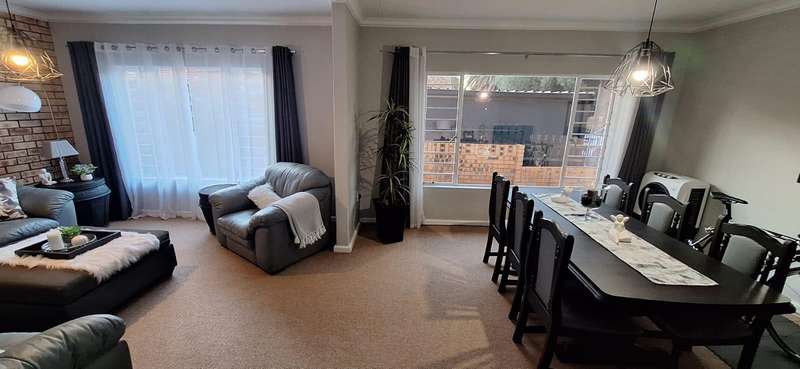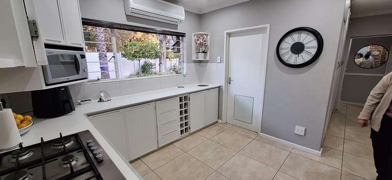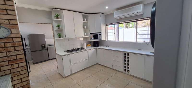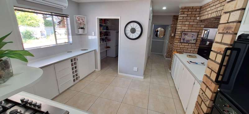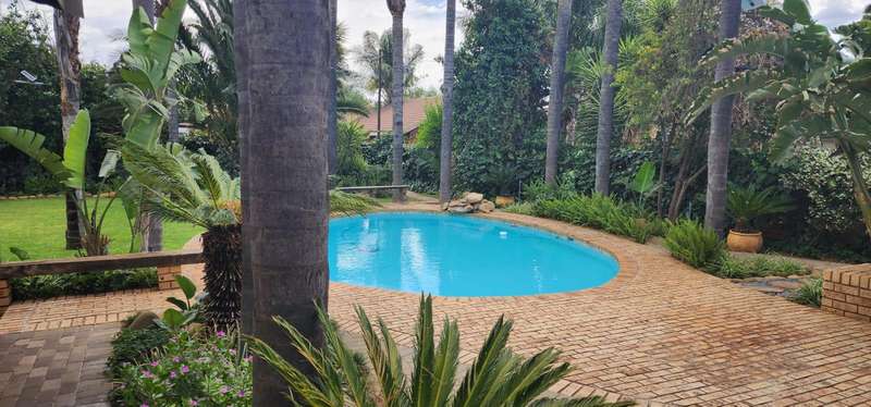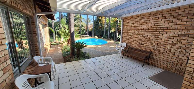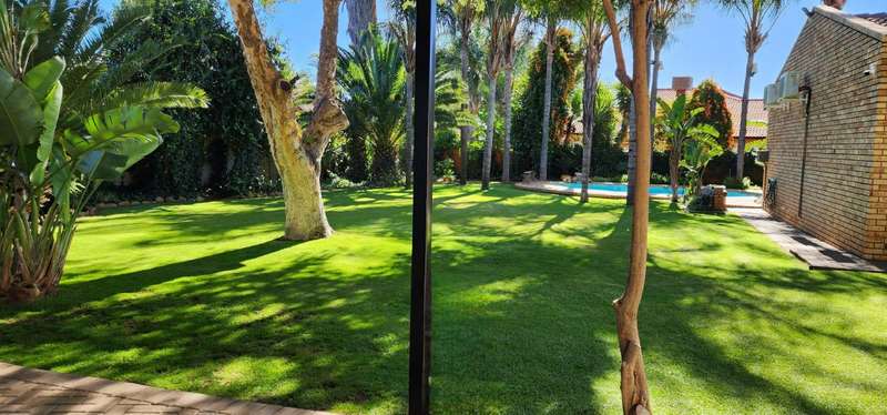 SOMETHING REALLY SPECIAL This property is not just a home; it's a masterpiece of timeless elegance, an entertainer's paradise, and a testament to luxury living. Sliding doors and floor-to-ceiling windows - offering a seamless blend of indoor and outdoor living. Open to the sprawling, manicured lawns and the inviting pool area. BONUS = Borehole ?Çó 3 x 5000lt Jo-Jo Tank ?Çó Security lights and Solar Panels - 9kw Sunsynk inverter, Solar MD 14,2kw Battery back up ?Çó Day & night sensors Lights ?Çó Pool and Geyser controlled by Wifi on phone App This Property offers ?Çó 3 Bedrooms. The bedrooms can accommodate Queen sized beds and all have air conditioning and built in cupboards ?Çó 2 Modern Bathrooms ?Çó The kitchen is spacious and well equipped with Eye Level Oven, Gas Hob, a built in Wine Rack and a spacious Pantry and a scullery ?Çó Open plan between the TV Room and kitchen, which opens out onto an outside entertainment area, ?Çó Built in braai facility. ?Çó Upstairs is a modern gym area, with mirrored walls. ?Çó Beautiful garden with irrigation ?Çó The outside braai area overlooking a chlorinated swimming pool is perfect for entertaining some friends or family. ?Çó Skylights down the passage ?Çó 2 x double garages with 4 x parking ?Çó Double carport with two parking's. Inside there is secure parking for another 6 cars, as well parking in the garden for another 7. ?Çó Outside storeroom fitted with fittings to store your needs. ?Çó Extra big storeroom with covered parking in front. ?Çó Remote controlled entrance. A 16 stationed Camera. Alarm system but not activated The Property is totally walled and secured with Cameras Call us to view this Property