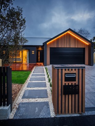Built by KPA Properties Ltd for high-end living and modern comforts with stylish finishings throughout, this 188m2 (approx) three bedroom, two bathroom home has it all. At first sight it offers instant street appeal with it's own vehicle access, LED-lit double gable and a striking black and cedar colour scheme. Enter and enjoy the hub of the home, open-plan living, dining and kitchen area, with modern appliances and a good-sized butler's pantry. Extra features add space, depth and comfort - ducted heat pump, square-stopped, high ceiling over the lounge and double-glazing throughout. The master is set apart from the other two bedrooms, with walk-in-wardrobe and beautifully tiled ensuite, underfloor heating, a double basin and double mirrors. The main bathroom is also tiled with a large shower. Easy access into the home is possible with a double carpeted, internal access garage with attic and laundry, drive straight in from the road. There's also a separate concreted area to the side of the home for the caravan! Well positioned on the 476m2 section (approx) with landscaping, lighting, two outdoor deck areas, fencing and planting all complete, this home is move-in ready! The location cannot be beat being walking distance to town, the Esplanade, and the river walkway. Get in quick! Call today or come to our open home!