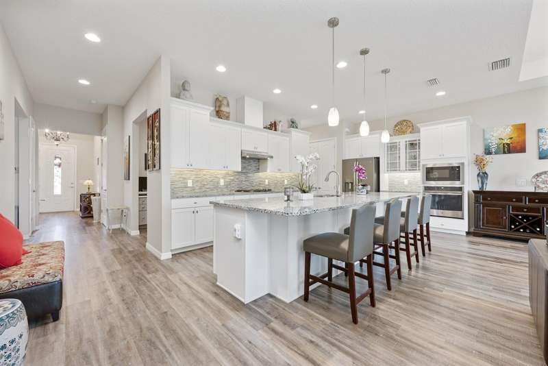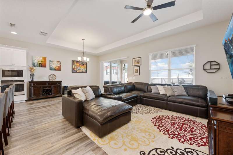 Ask about a lender provided RATE BUY-DOWN CREDIT on this home! ***Welcome to this beautifully maintained home in Apopka’s sought-after Hilltop Reserve, BUILT IN 2019 with every UPGRADE imaginable! From the undeniable CURB APPEAL to the light and bright OPEN CONCEPT, this home offers both style and functionality with plenty of flexible space for today’s living. The interior delivers a spacious flowing design featuring LUXURY VINYL PLANK FLOORING and a SPLIT BEDROOM layout with the primary suite on the main floor. The chef’s kitchen is a true standout offering UPGRADED APPLIANCES, a gas cooktop, built-in oven, convection microwave, sleek countertops, and an OVERSIZED ISLAND with bar seating overlooking the great room. TRIPLE SLIDING GLASS DOORS seamlessly connect the indoor living space to your COVERED & EXTENDED SCREENED LANAI – complete with a Michael Phelps swim spa for 10 that can be heated or cooled, perfect for year-round enjoyment! The FENCED backyard and SUNSET VIEWS create a private outdoor retreat, with the added bonus of a direct gas hookup on the lanai for effortless grilling. The PRIMARY SUITE is a true escape from the day with space for a sitting area, and featuring DUAL WALK-IN CLOSETS inside a luxurious en-suite bath with an oversized shower and upgraded shower heads. A tucked away third bedroom, bath, and loft upstairs create an ideal IN-LAW SUITE, with a door at the base of the stairs for privacy and a wet bar/kitchenette for convenience. The office/den on the main floor can easily be closed off to create a fourth bedroom if desired, and a BUILT-IN OFFICE nook adds more functionality to this versatile floor plan. Additional highlights include a drop zone/mudroom off the garage, a spacious laundry room, TANKLESS WATER HEATER, OWNED WATER SOFTENER SYSTEM, and an EV CHARGING STATION. Beautiful landscaping and a CUL-DE-SAC street add to the appeal, while the home’s LOW HOA provides access to great community amenities. Hilltop Reserve is conveniently located just off the 429 with easy access to 414 and 441, putting you minutes from Wekiwa Springs State Park, Lake Apopka, Forest Lake Golf Club, AdventHealth Apopka, shopping, dining, and so much more. This MOVE-IN READY home combines thoughtful upgrades, flexible spaces, and inviting indoor-outdoor living! With no rear neighbors and every detail considered, it offers room to grow and the modern comforts you have been looking for. Call today to schedule a tour!