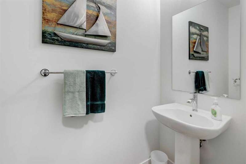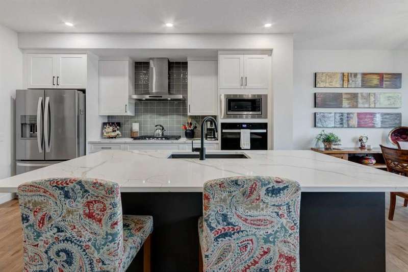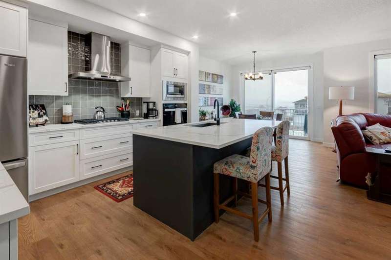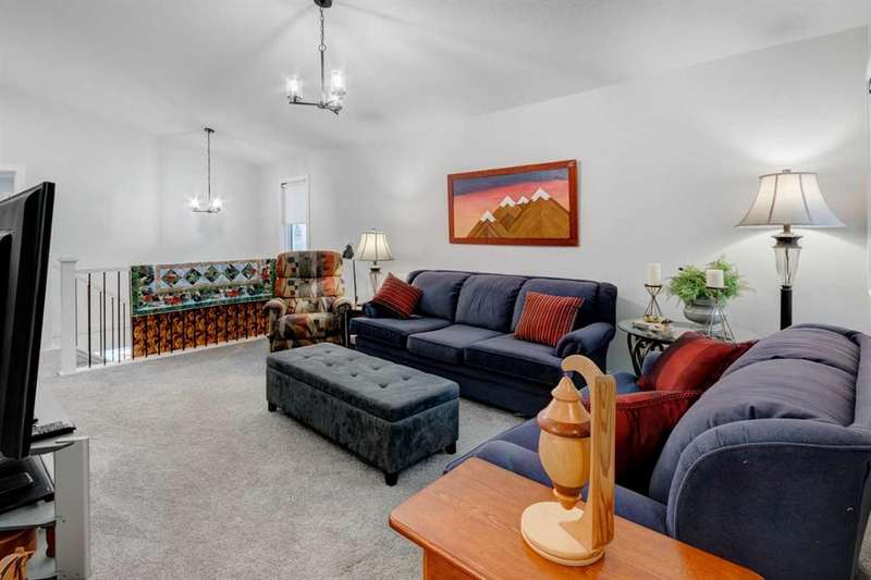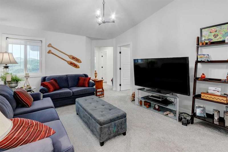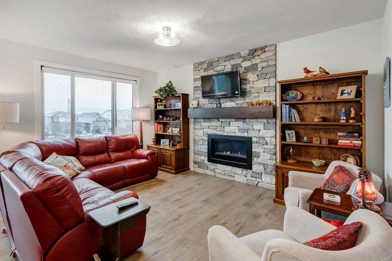 Discover your dream home in the heart of Rivercrest, Cochrane, with this stunning 2024-built, 2-storey detached home, offering 2,266 sq ft of modern elegance. Perfectly situated between Calgary and Banff for quick mountain getaways, this spacious 2.5-bath residence features 4 generous bedrooms upstairs, a versatile bonus room ideal for a playroom or media space, and a gourmet kitchen with quartz countertops, two-tone cabinetry, high-end stainless steel appliances, and a convenient walk-through pantry for effortless storage. The main level boasts chic luxury vinyl flooring and soaring 9-foot ceilings, while the unfinished walkout basement offers a blank canvas for your personal touch. Cozy up with two beautifully designed fireplaces, adding warmth and ambiance. The bathrooms feature elegant quartz countertops, with the primary ensuite showcasing a luxurious double vanity, and an upper-level laundry room adds everyday convenience. Step outside to a treated deck, perfect for enjoying the scenic surroundings. Ideally located across from a future school and nestled in one of Cochrane’s most sought-after communities, this home combines luxury, functionality, and an unbeatable location—ready to welcome you home!