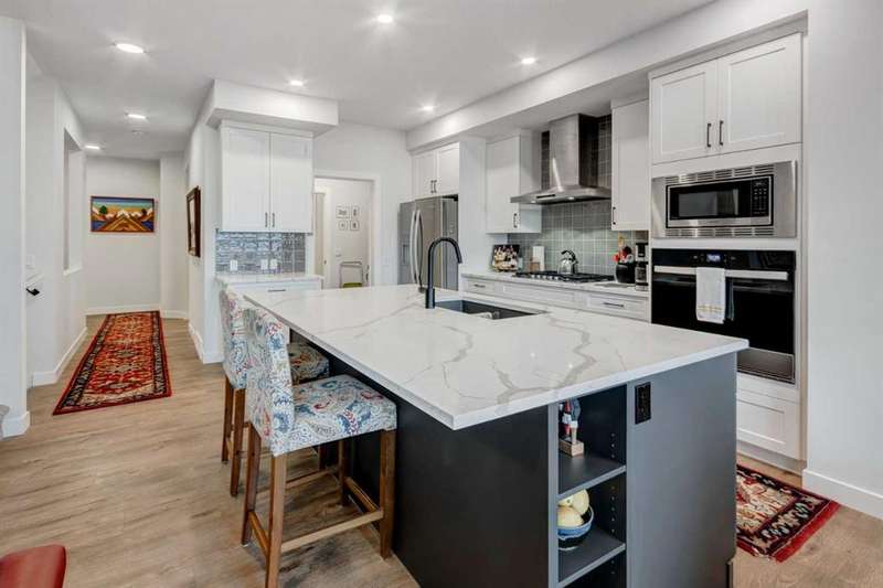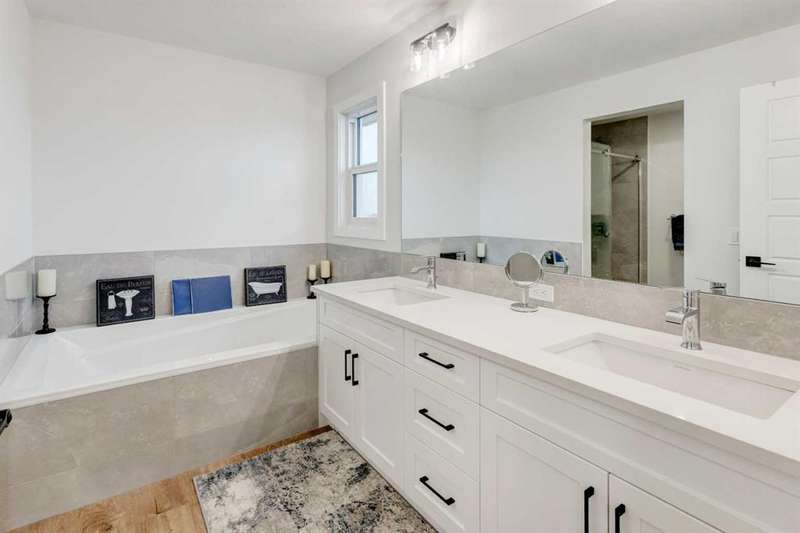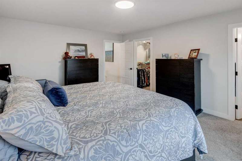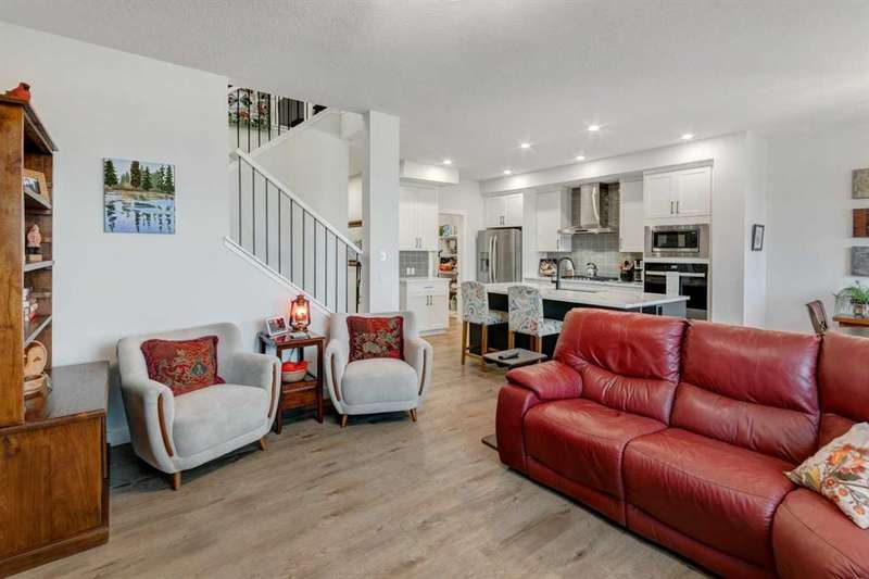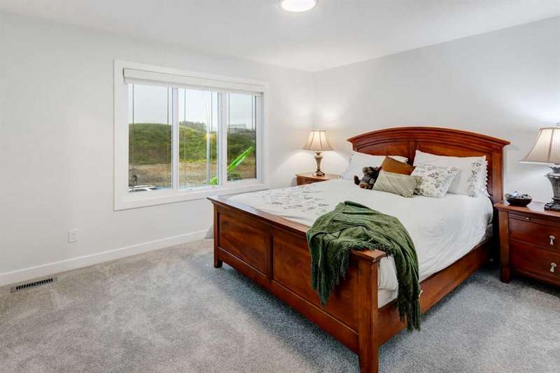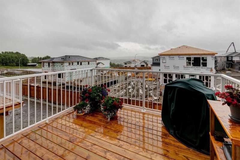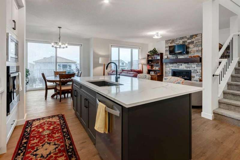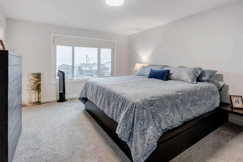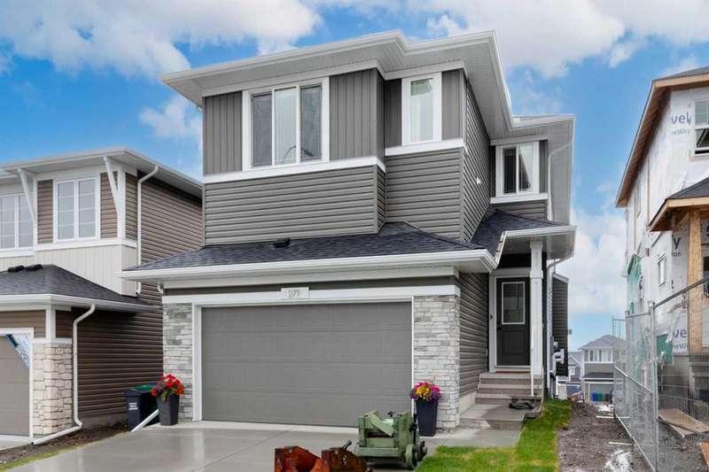 Discover your dream home in the heart of Rivercrest, Cochrane, with this stunning 2024-built, 2-storey detached home, offering 2,266 sq ft of modern elegance. Perfectly situated between Calgary and Banff for quick mountain getaways, this spacious 2.5-bath residence features 4 generous bedrooms upstairs, a versatile bonus room ideal for a playroom or media space, and a gourmet kitchen with quartz countertops, two-tone cabinetry, high-end stainless steel appliances, and a convenient walk-through pantry for effortless storage. The main level boasts chic luxury vinyl flooring and soaring 9-foot ceilings, while the unfinished walkout basement offers a blank canvas for your personal touch. Cozy up with two beautifully designed fireplaces, adding warmth and ambiance. The bathrooms feature elegant quartz countertops, with the primary ensuite showcasing a luxurious double vanity, and an upper-level laundry room adds everyday convenience. Step outside to a treated deck, perfect for enjoying the scenic surroundings. Ideally located across from a future school and nestled in one of Cochrane’s most sought-after communities, this home combines luxury, functionality, and an unbeatable location—ready to welcome you home!