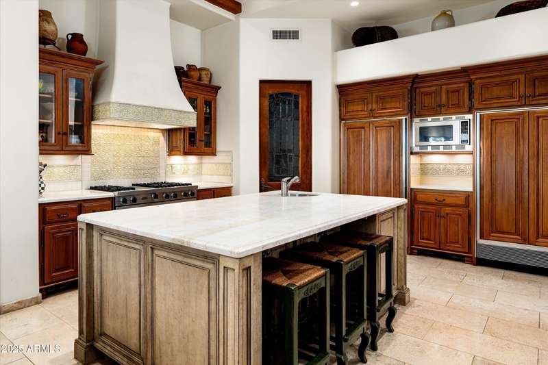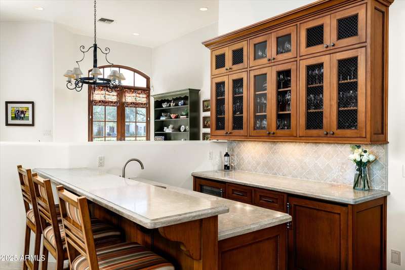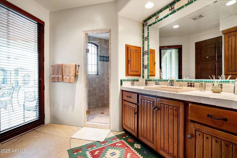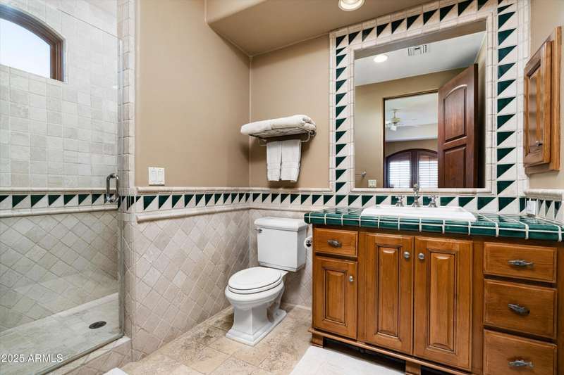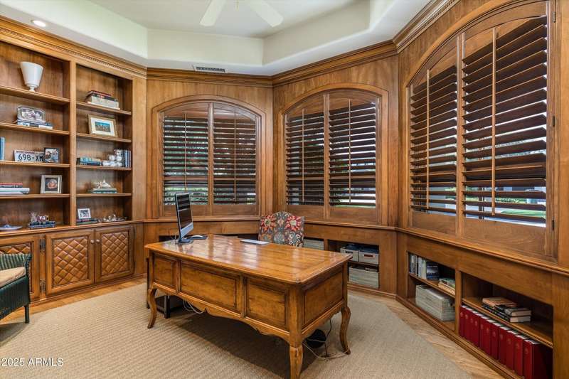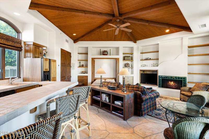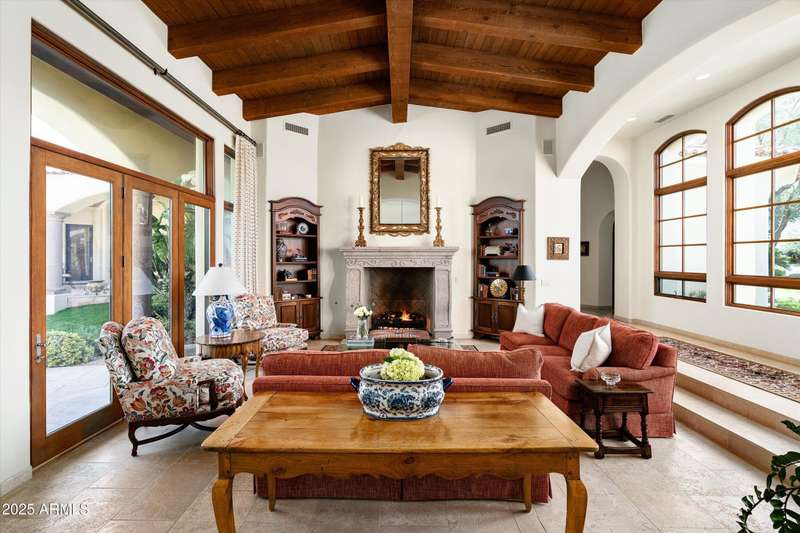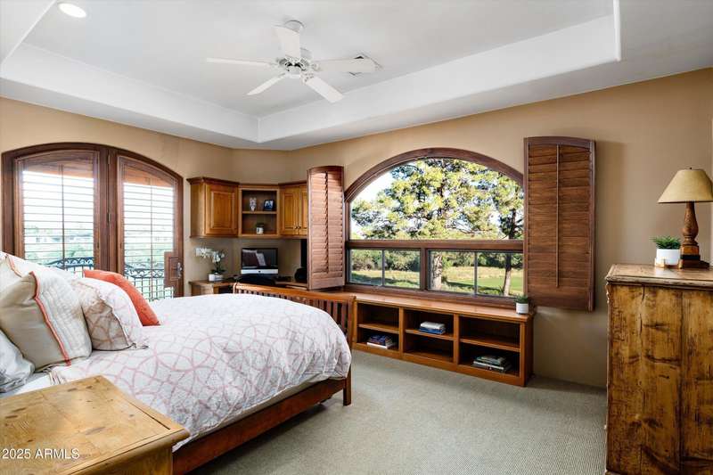 Perfectly positioned on a beautiful private lot within the gated community of Hidden Paradise, this stunning golf course home overlooks the 9th hole of Camelback Country Club, offering privacy, exceptional mountain views, and refined desert elegance. The main level features a spacious primary suite with an adjacent office on one side of the home, and a large guest bedroom on the west wing. Upstairs are three additional en-suite guest rooms, each with its own balcony capturing sweeping views of the McDowell Mountains. Guest house located across the backyard offering privacy. Thoughtful craftsmanship, custom woodwork, and timeless design by Lee Hutchison AIA Urban Design Associates. The owner's suite includes a steam shower, dual vanities, private courtyard access, and abundant closet. The gourmet kitchen is appointed with a Viking 6-burner range, Sub-Zero refrigerator and freezer, Dacor double ovens with warming drawer, and dual dishwashers. Additional highlights include a wet bar, with ice maker and beverage refrigerator, motorized light-sensing shades, large floor to ceiling windows that capture incredible sunsets over the mountains, central vacuum, and a 4-car garage with an enormous amount of storage. A guest house features a full kitchen, Murphy bed, and living room,ideal for guests or multi-generational living. Outdoor amenities include a heated 10-foot-deep diving pool, a spa, basketball area, outdoor fireplace, and large covered patios. The landscaping frames the surrounding mountains and fairways. With its remarkable setting, thoughtful layout, and resort-inspired outdoor living, this home embodies the ultimate in luxury, privacy, and Paradise Valley living.
