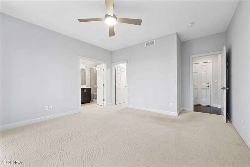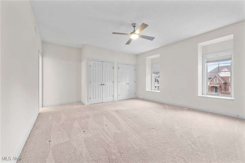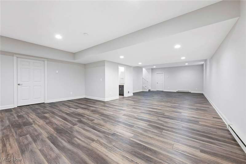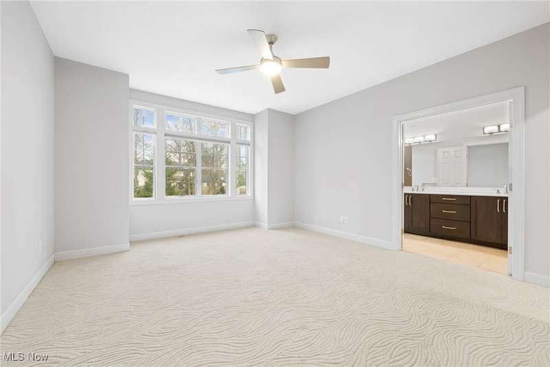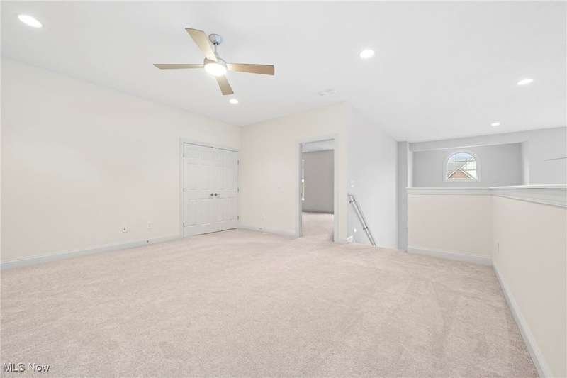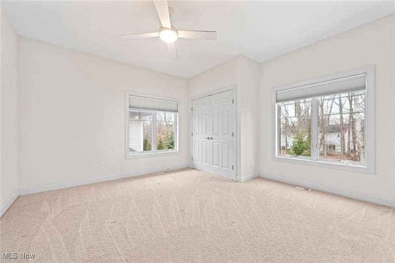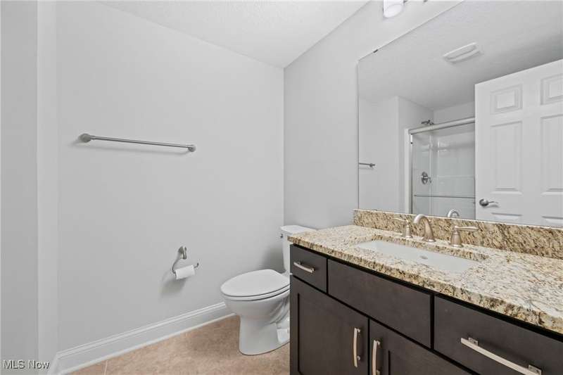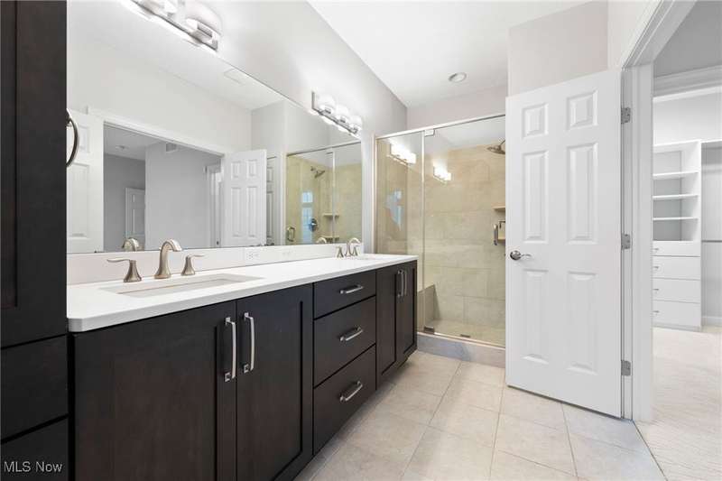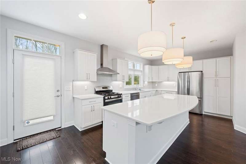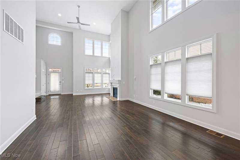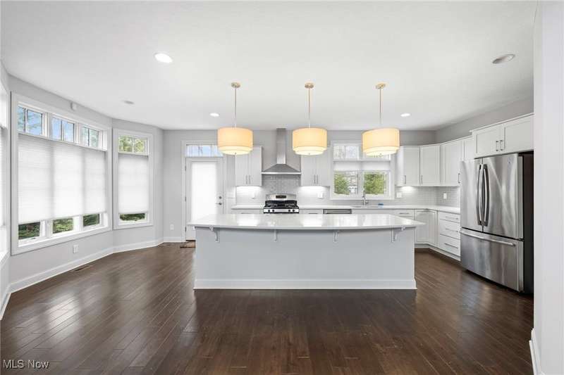 Welcome to this wonderful colonial with 4 bedrooms, 3 full and two ? baths, with a 1,500sf finished basement. Open floor plan has stunning wide plank hardwood flooring, fireplace with marble surround, and an expansive kitchen with 12' foot center Island, white cabinetry with soft close drawers, and Stainless steel appliances. First floor master bedroom with fantastic bathroom, double vanity sinks, and an enormous walk in closet. Three large bedrooms up, in addition to a spacious loft overlooking the great room. Contemporary lighting and recessed cans throughout. Outdoor entertainment space includes a stamped concrete patio with views to the wooded backyard. Close to I-90, the airport, and downtown Cleveland. Walk to restaurants, cafes, retail shopping, and special events.