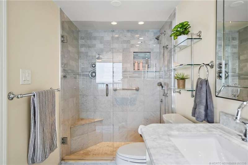 Oceanfront Luxur? L?ving ?n J?n??n Beach. Enjo? bre?thtaking views of the Atlantic Ocean and Intercoastal Waterway from this stunning beachfront condo. Fully renovated 2-bedroom, 2-bathroom condo has a gourmet kitchen equipped with stainless steel appliances, quartzite countertops, stackable washer/dryer, and a convenient office nook. The luxurious Owner's Suite boasts an all-marble bathroom with dual sinks, a large walk-in shower, and an expansive custom walk-in closet. Islandia II offers resort-style amenities including: guard-gated access, two heated pools, a hot tub, fitness center with sauna, lighted tennis and pickleball courts, bocce courts, and a billiards room, a community room with a full kitchen, dedicated pet off-leash area, RV/trailer parking, and a car wash station. The building has completed the milestone report along with concrete and structural inspections. Located on Hutchinson Island near Downtown Jensen, Downtown Stuart, great local restaurants & shopping.