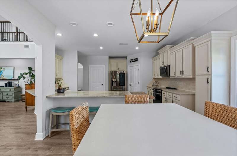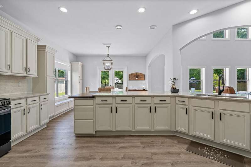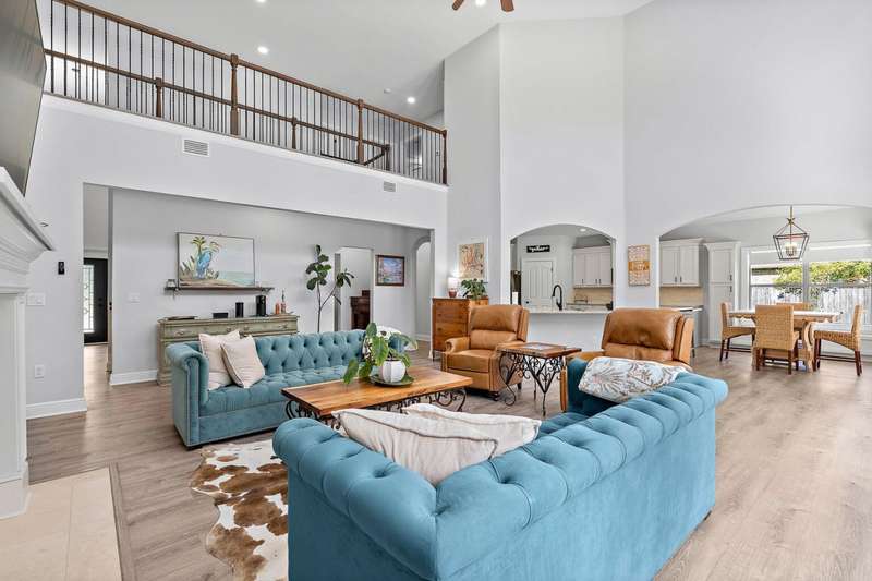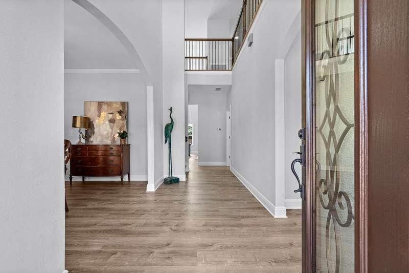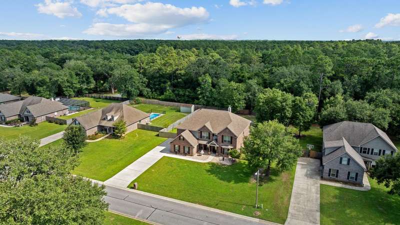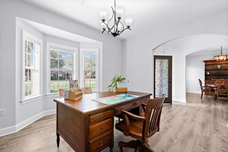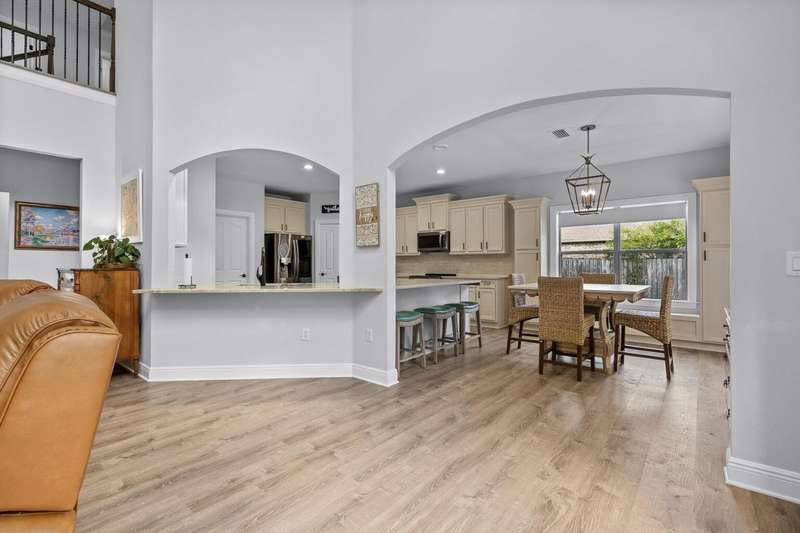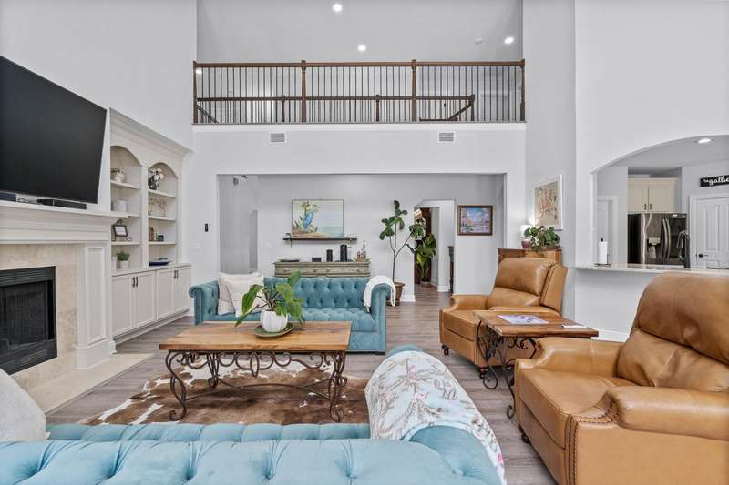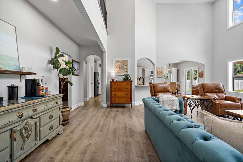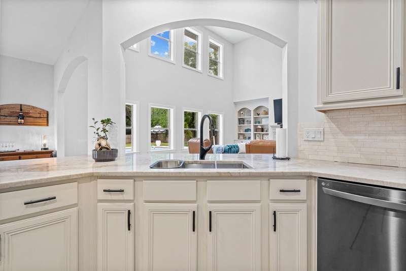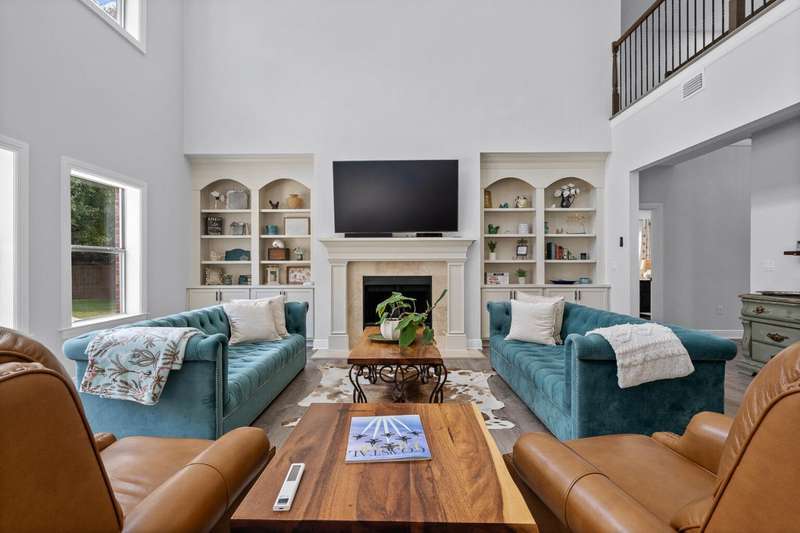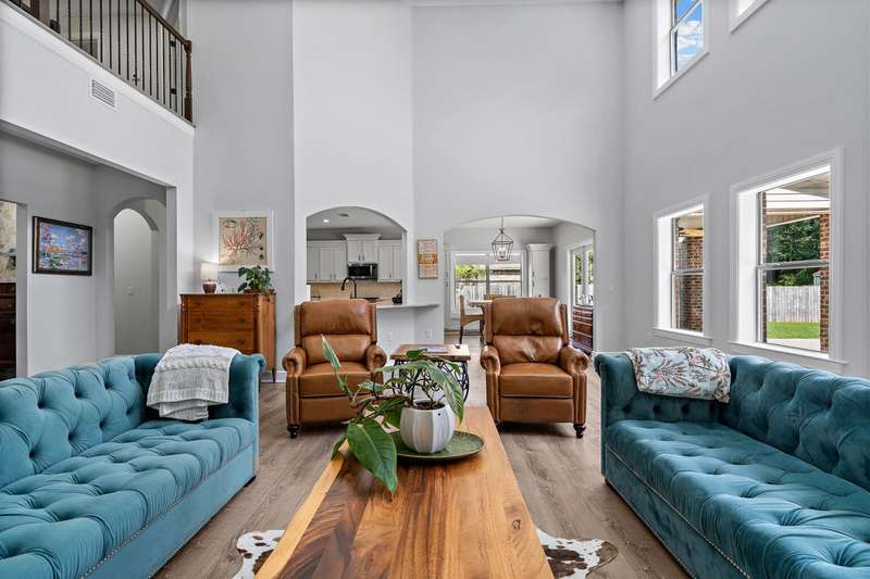 Step inside this beautiful home, where architecture and lifestyle align. This 6BR, 3.5BA home spans 4,296 SqFt on over half an acre, anchored by a resort-style pool retreat. Inside, soaring ceilings, a dramatic catwalk, and custom built-ins create a living space filled with light and presence. The kitchen pairs Taj Mahal quartzite with custom cabinetry and a matching walk-in pantry, flowing seamlessly to a breakfast nook, dining, and office. The downstairs primary suite is a private escape with dual closets and spa bath, while upstairs 5 bedrooms and a spacious game room provide scale and versatility. With timeless red-brick curb appeal, gated privacy, and details at every turn, this home is crafted for those who want elegance, comfort, and soul. Schedule your tour today!