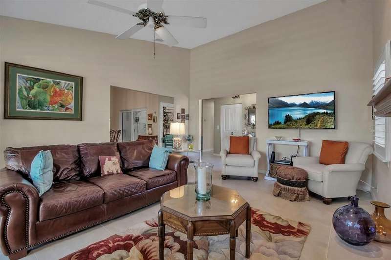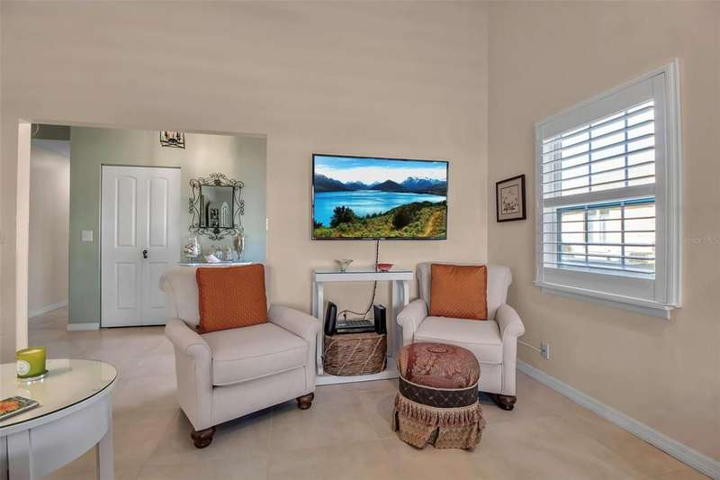 Come see and decide to stay at this 3 bedroom/2 bath/ 2 car garage Villa in Golfing community with a Semi-Private Golf Club right down the street This is a well-maintained home, centrally located at Turnberry Woods just off Sarasota Bay is an ideal place for any age or family to call home. (Walking distance to IMG Golf Club, BTC Tennis Club, State College of Florida (SCF) or a 15 minute short backroad drive to the beautiful Gulf Beaches) Do not forget to ask about Detwiler's Market located just a short distance around the corner.So many updates:The first thing you will notice when you enter the home is the Gorgeous Contemporary Front door - a statement in itself installed in 2022. The Main Roof was replaced and the Exterior freshly painted in 2022. The Florida Room off the kitchen had the roof and screening replaced in 2019. Hurricane rated windows and sliders were installed in 2021 and Plantation shutters installed through-out the home in 2019. The kitchen was updated starting in 2017 with Granite countertops. The stainless range hood and granite backsplash serve as the main focal point for the entire kitchen. All Kitchen appliances were replaced in 2023, and a large Farmhouse Sink and Wine Refrigerator were also added. Large porcelain tiled floors throughout entire home, wood Fireplace serves as a focal point in living room. Formal dining area sits aside the tropical atrium boasting a view of orchids and tropical plants. The bathrooms were updated 2017-2018 with walk in showers, The Washer and Dryer were replaced in in 2024.Outdoors, the Trex sundeck for grilling and entertaining at the back of the home were installed in 2020 for the ultimate low maintenance and weather protection - Grilling is allowed!! Beautiful Paver walkways added in 2018. A full sized screened garage door was added for garage ventilation and privacy. There is a wonderful outside sitting area in front of the home which provides a place to drink your coffee in privacy, or move to seats which allow you to greet your neighbors or watch the beautiful Gulf Coast sunsets. There are Lightweight hurricane shutters for all weather protection.2 pets with no restriction on weight are allowed, there is no wait to lease if that fits your plans, and the minimum 3 months 2x/year helps the community maintain its neighborly feel... If you want to take a swim, the community pool is right out back!Ask about the 1 FULL YEAR HOME WARRANTY Association Fee covers Roofs, Painting, Cable, Internet, Garbage, Recycling, Yard waste, Pool, lawn Maintenance and pest control, pool maintenance, insurance. Fee will be reduced in 34 months after loan taken by Association to replace roofs is retired.