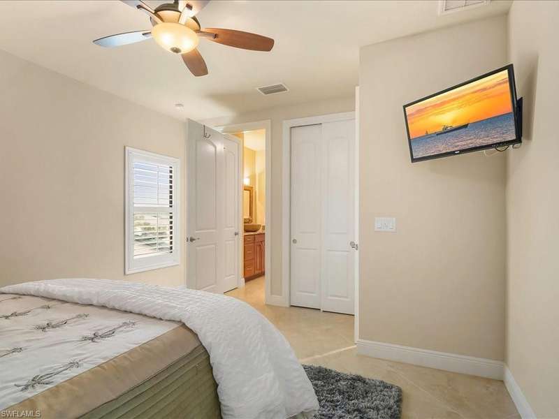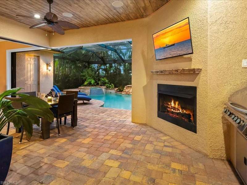 Ideally located in the highly sought after 500 block of Naples Park, this beautifully maintained home is perfect as a full-time residence or a high performing vacation rental. The layout features a spacious first floor primary suite and a flexible office or den, with two guest bedrooms upstairs offering space and privacy for family or visitors. Soaring ceilings, tile flooring throughout, and an open concept design create a spacious, inviting interior. Large sliding doors connect the main living areas directly to a private backyard retreat, making indoor outdoor living effortless. Enjoy a resort style pool and spa with rock waterfall, sun shelf, and a cozy outdoor fireplace, perfect for entertaining or relaxing in the Florida sun. Just a short bike ride to Vanderbilt Beach and minutes from Mercato and Waterside Shops, this home offers the perfect combination of comfort, convenience, and coastal living.