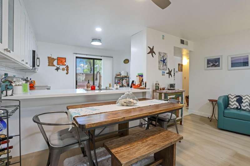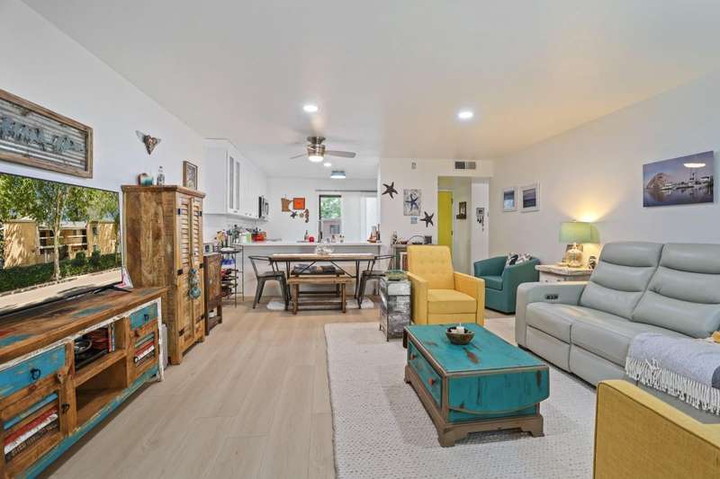 Beautifully remodeled, move in ready 2 bed, 2 bath downstairs, corner condo offers the perfect combination of indoor, outdoor living with 3 patios and a pool view. Enjoy all the amenities with access to Lake Lincoln, several pools, a spa, and clubhouse. HOAS include water, sewer garbage, roof and ground maintenance in this gated community which is very unique and adds a lot of value. Upgrades include luxury vinyl flooring, new title, smart oven/range, new cabinets, quartz countertops, butcherblock counters, fresh paint, new LED lighting in the kitchen and living room. Baths also updated and ready for you. This is vacation living at its best, don't miss this one!