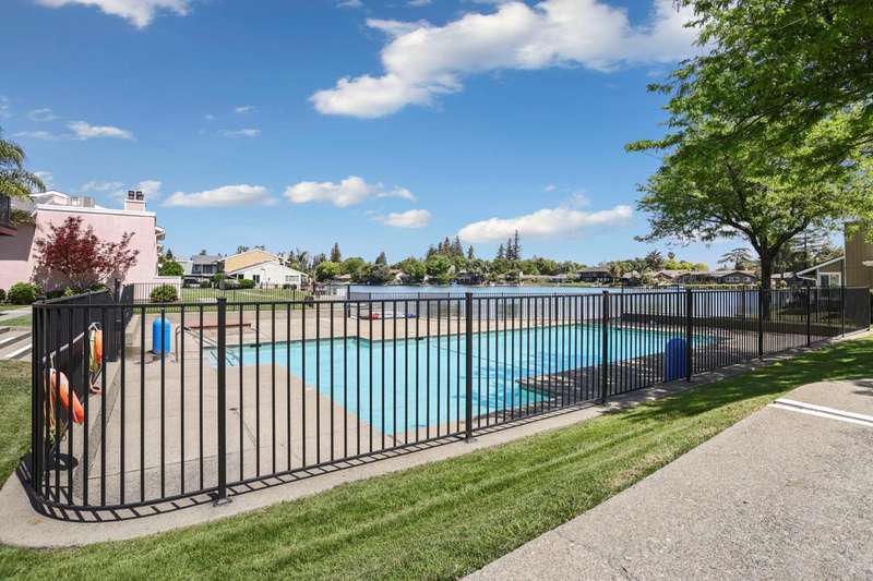 Beautifully remodeled, move in ready 2 bed, 2 bath downstairs, end unit, North Shore condo offers the perfect combination of indoor, outdoor living with 3 patios and a pool view. Enjoy all the amenities with access to Lake Lincoln, several pools, and clubhouse in this gated community. HOA's include water, sewer, garbage, roof and ground maintenance which is rare and convenient. Upgrades include luxury wide plank, vinyl flooring, new tile, smart oven/range, new slow closing cabinets, quartz countertops, butcher block counters, newly painted, all new lighting in the kitchen and living room. Baths also updated and ready for you. This is place is move-in ready in one of Stockton's most desirable neighborhoods. Don't miss this one!