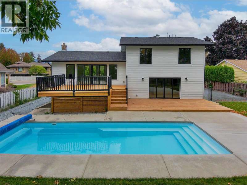 This stunning 4-bed, 4-bath home is a true gem nestled just a 2-minute walk from Sarson's Beach at Okanagan Lake. Large fully landscaped lot boasts a private, spacious backyard complete with new swimming pool and multi-level balcony, it's the perfect oasis for relaxation and entertaining. Extra RV and boat parking on the property. Inside and out, this home has been completely updated and remodeled with brand new top-quality finishings and craftsmanship ensuring modern comfort and style throughout. Upgrades include chef-quality high end appliances, custom kitchen with 36 inch gas range, butler's pantry, jetted shower in the master bathroom, engineered hardwood flooring and new electrical & plumbing throughout. Full legal suite with seperate entrance & laundry this home is built for an investor or mortgage helper, excellent income potential with long-term or short-term rentals. This unique property is a MUST SEE! Call us today for more information and to book a viewing. (id:58403)
