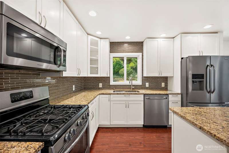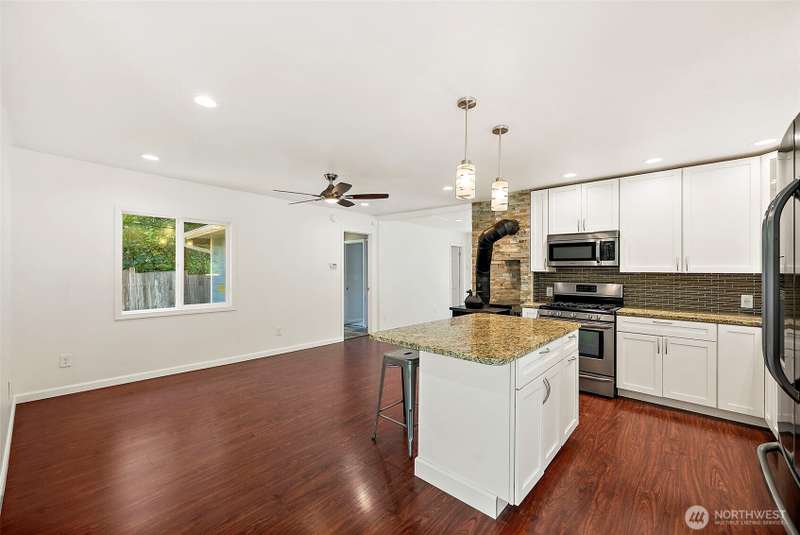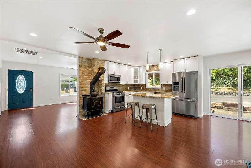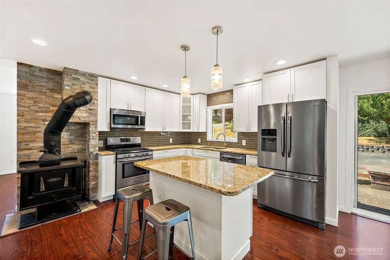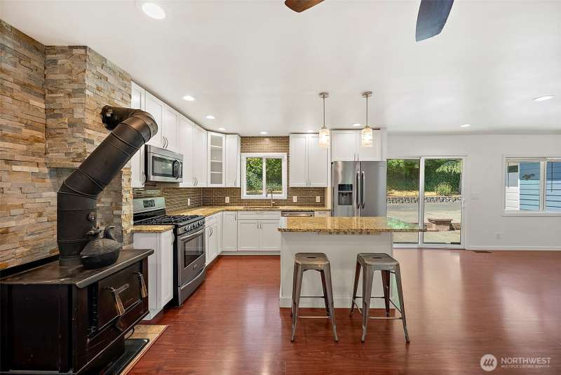 Updated Rambler in East Bremerton dialed in and ready for its new owner! Upgraded kitchen with stainless appliances, gas range & granite counters. Plus a beautiful iron stove that is a must see. Three bedrooms with en suite off primary, beautiful built ins in the living room & two remodeled bathrooms. Out back you will step onto your oversized deck and soak in the sunshine with plenty of privacy + space to play & room to garden. Freshly landscaped. Even the driveway is expansive with space to park an RV, boat, or a number of vehicles. Newer siding, fresh interior & exterior paint, a true PNW gem just waiting for its new owner! Convenient access to HWY 303 & the ferry system. Great location for a commuter. Quiet street & neighborhood.