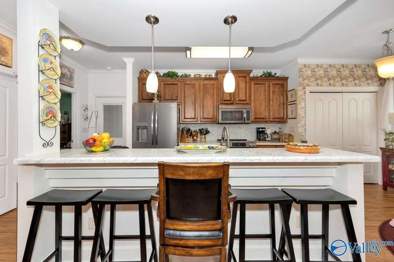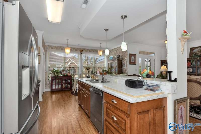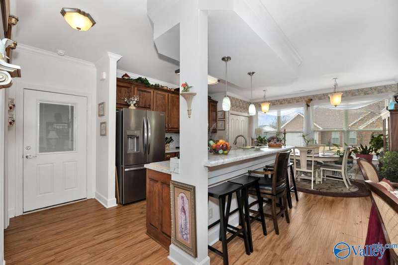Welcome to The Ridge—an easygoing, full-brick rancher with hardwoods throughout and an airy, open layout. The kitchen shines with subway tile, stainless appliances, island seating, and a comfortable eat-in space. The spacious primary suite offers two closets for effortless living. Step out to a screened porch overlooking an oversized patio and private fenced yard—perfect for slow mornings, easy evenings, and weekend gatherings. No HOA, beautifully maintained, and offering the kind of comfort that simply feels like home.