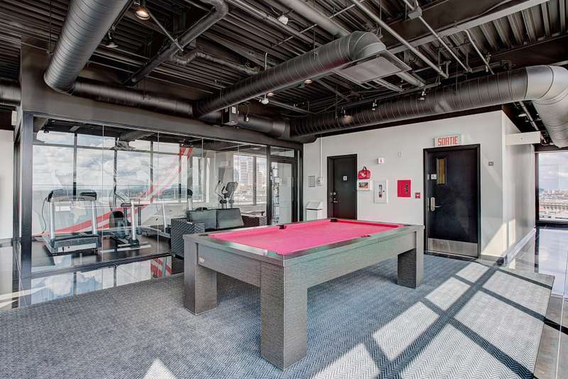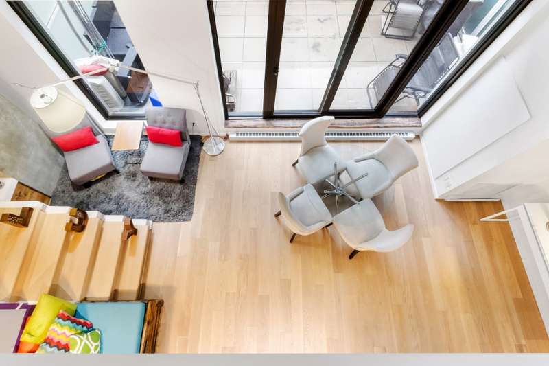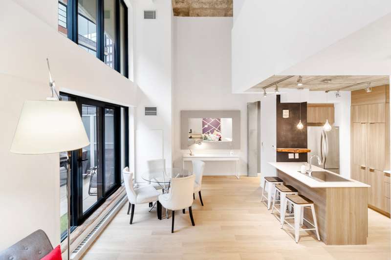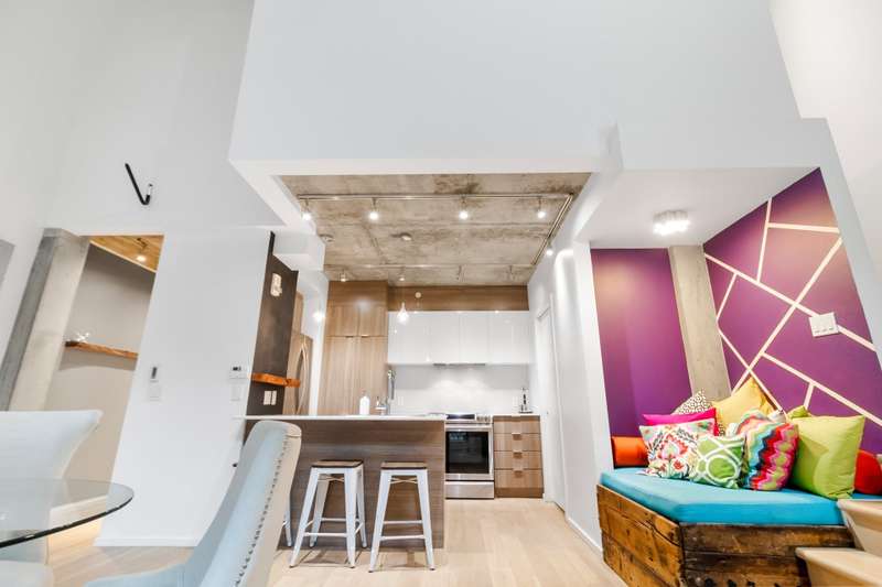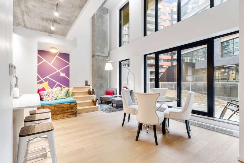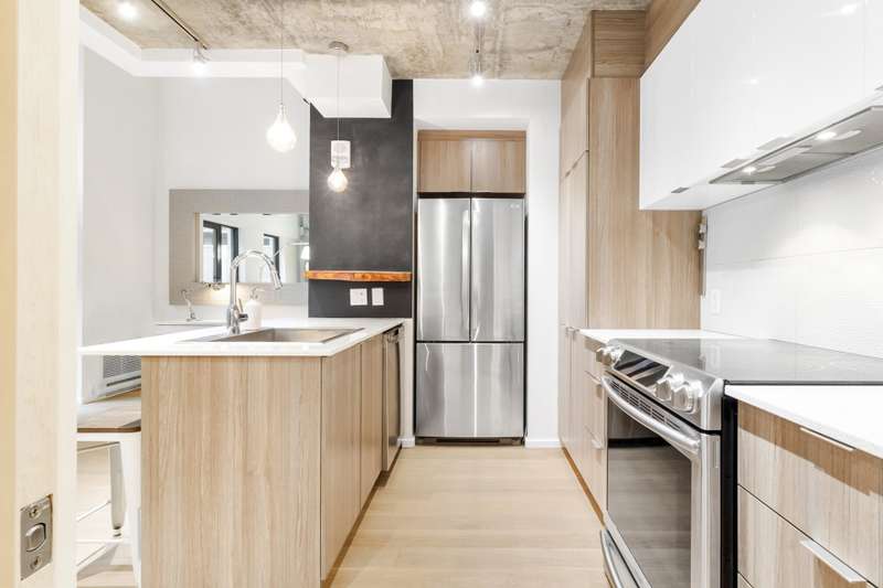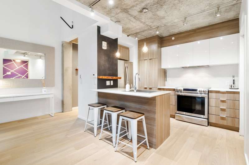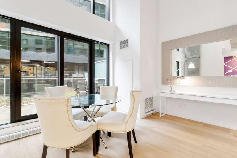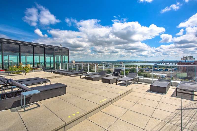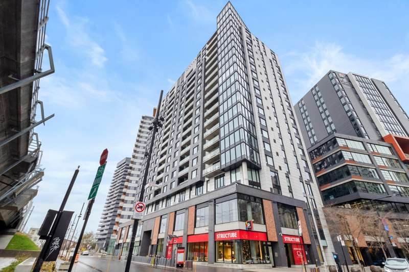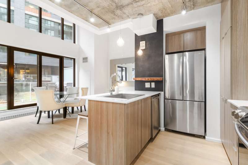 Discover urban luxury in Griffintown with this rare two-level condo blending modern elegance and convenience. Featuring a mezzanine bedroom, double-height concrete ceilings, and oversized windows, the space is filled with natural light. Relax or entertain on the 20x10 ft. private terrace. Move-in ready with included appliances, an indoor garage spot, and a gym. Steps from public transit, REM, and Griffintown's top restaurants and shops. Schedule your private tour today!