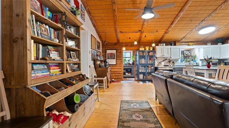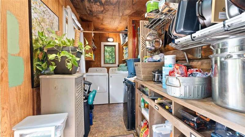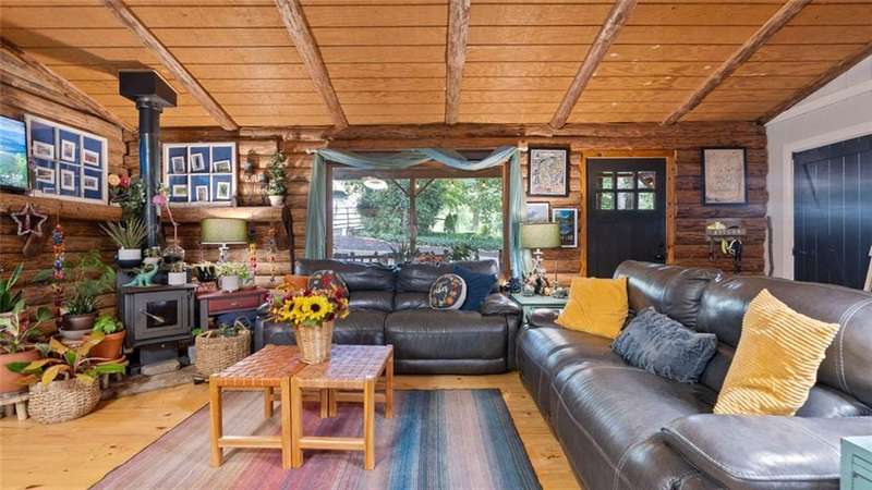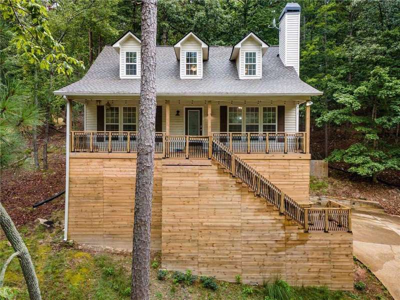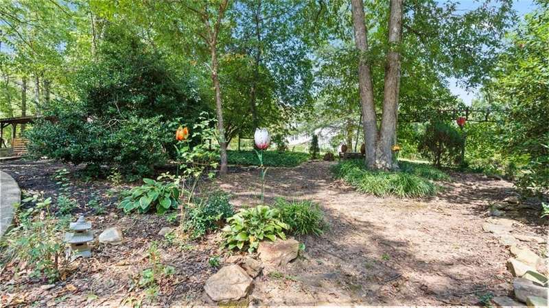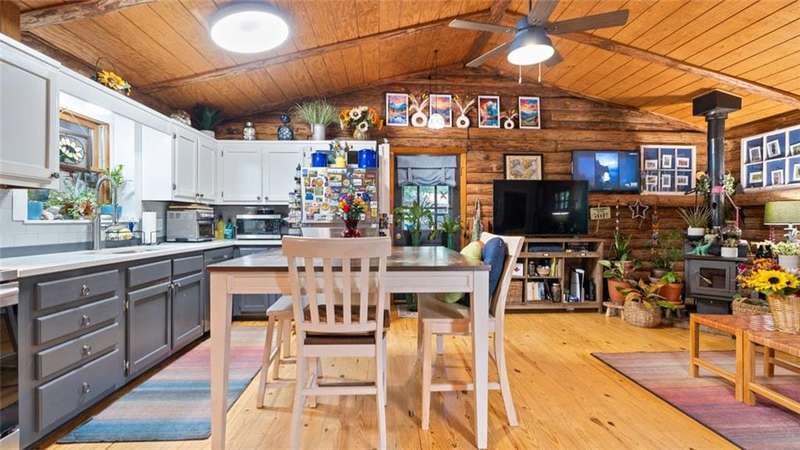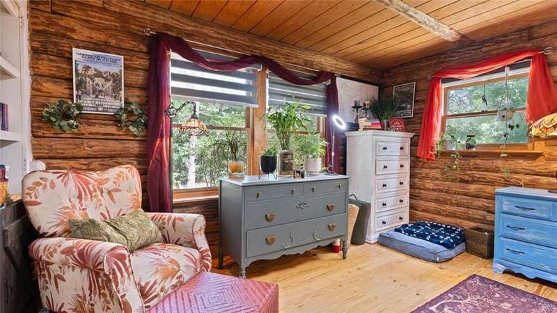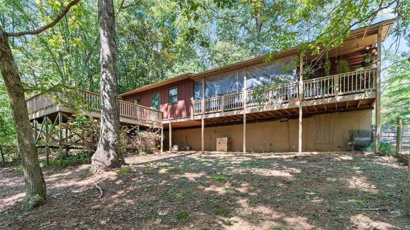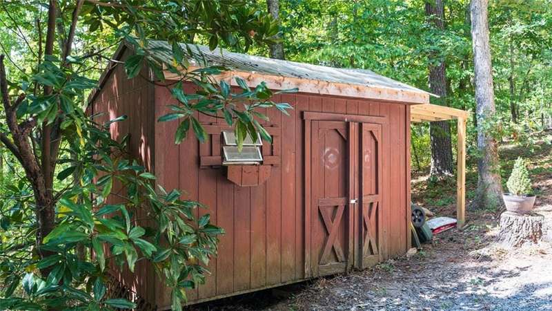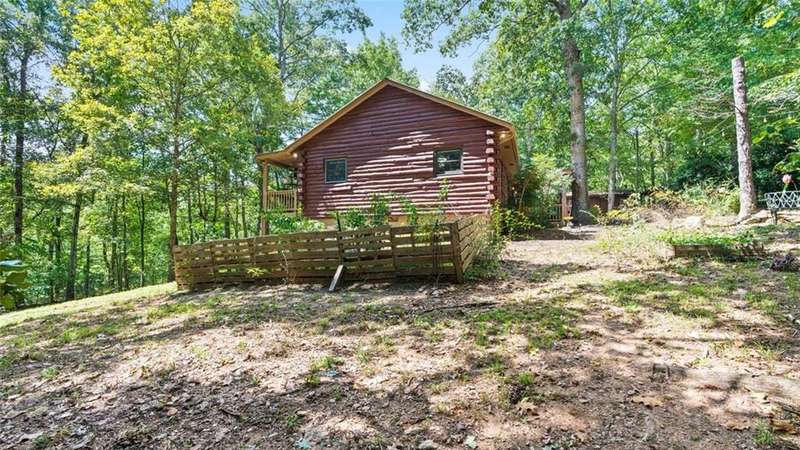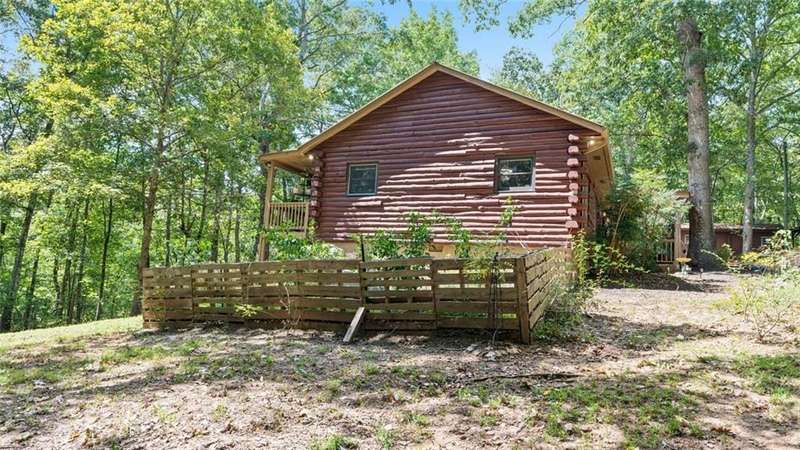 Escape to this enchanting renovated Log Cabin cottage situated minutes from Reinhardt University on 5 private wooded acres! Get away to your own mountain like retreat in this charming 2 bedroom 2 bath open concept home, complete with 2 new bathrooms and new kitchen. The energy efficient structure is an integrated log Cabin design with metal roofing and new HVAC system and beautiful wide plank pine flooring. The main area around the house is fenced and the beautiful natural setting, enhanced with flowering landscape plantings and lighting, leads to the large covered rocking chair front porch. Enter the spacious great room which is the heart of the home, with vaulted ceiling, open kitchen , sitting room with cast iron wood burning stove and dining area. Main hallway leads to secondary bedroom and new full bath with custom barn door. New owner's suite with spacious bedroom and sumptuous new full bath with soaking tub, and separate shower. Back hallway includes laundry room, built in shelving for pantry and storage, back door leads to huge back deck overlooking peaceful wooded back yard, and additionally a long side porch perfect for morning coffee and relaxing evenings. There are 3 separate outbuildings that serve the property. The first is an open covered grilling and smoker structure, great for the outdoor gourmet. The second is a large storage building with space for all you storage needs, and the third is a well equipped planting shed with clear ceiling panels to allow daylight for garden plantings. Completing this amazing property is a flower and vegetable garden area with wood pallet fencing. With 5 absolutely beautiful wooded acres, there are endless possibilities that make 502 George Gray Lane the perfect property for exceptional family living and entertaining!
