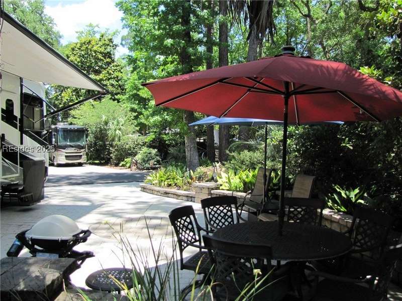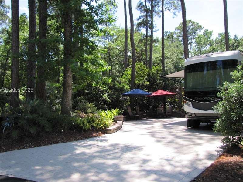 Lot 91 is priced to sell. Imagine upgrading your lot to your taste for less. Ask us for a survey to dream away and create your Personal Paradise. Accommodating up to a 42 coach with plenty of parking and gracious entertaining space. Mature landscaping with irrigation and lighting creates serene privacy. Table, chairs, umbrella and shed included in sale. Voted the #1 Motorcoach Resort in America, HHI Motorcoach Resort on the amenity driven south end has everything outside the front gates; shopping, restaurants, groceries, beach, bike paths, trolly, etc.
