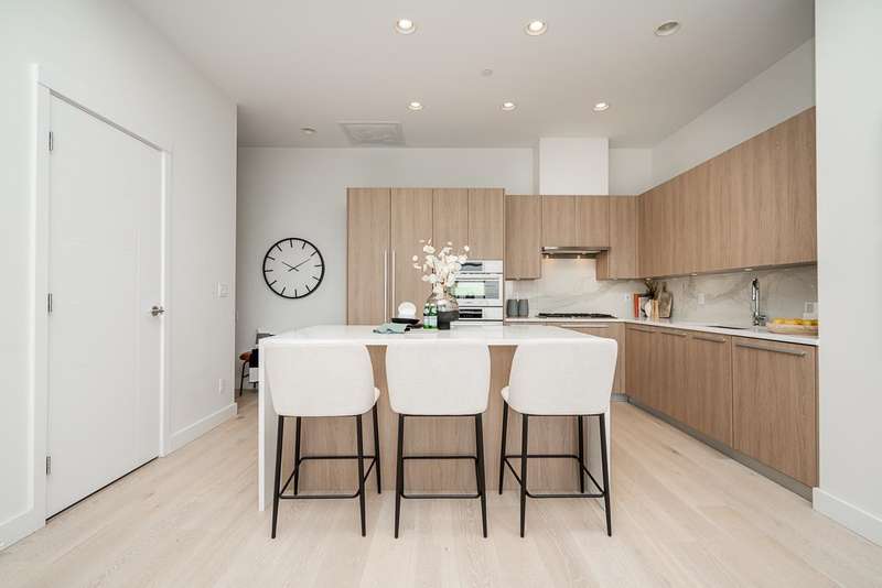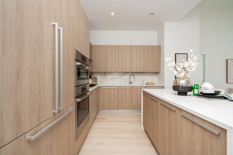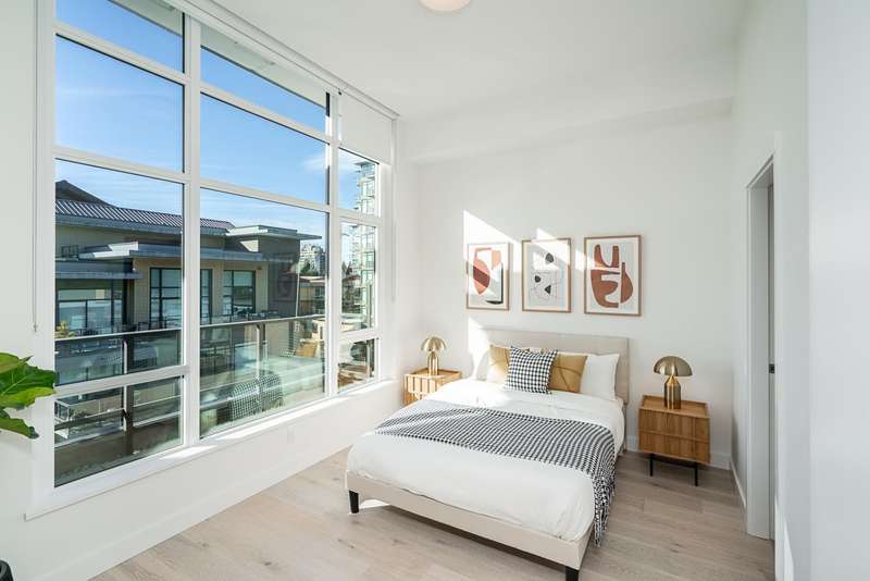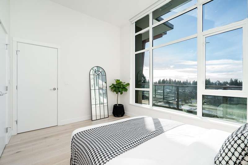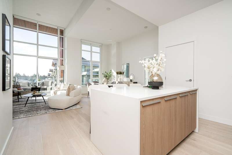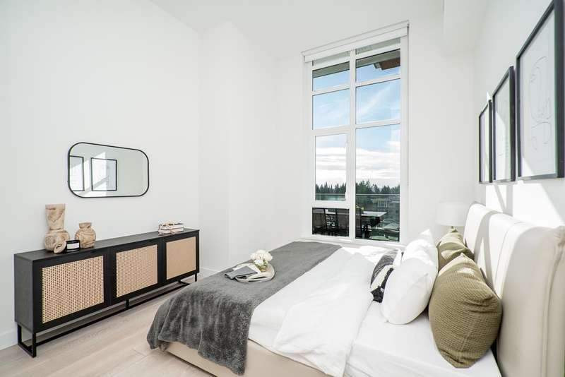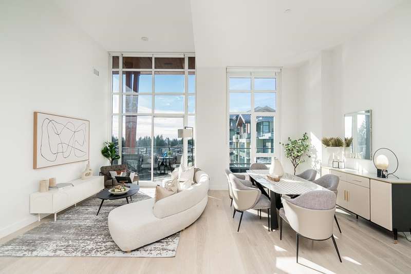 Discover your next chapter in this rare PENTHOUSE at Residences at Lynn Valley — offering the space, comfort, and ease perfect for downsizing. This bright, airy home features 2 spacious bedrooms with soaring ceilings, 2 full bathrooms (both en-suite) plus a powder room, and central A/C. The chef’s kitchen with premium BOSCH appliances opens to an expansive living area and large deck where you can relax and enjoy stunning sunsets (see photos). Ceilings up to 13'8" and south-facing windows flood the home with natural light, creating a sense of openness that’s hard to find in condo living. All in the heart of Lynn Valley Town Centre, steps to shops, services, and everything you need. A rare chance to enjoy penthouse living in a vibrant, walkable community. Comes with 2 parking + large locker.