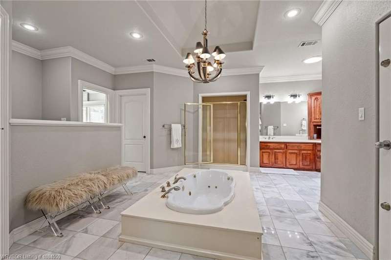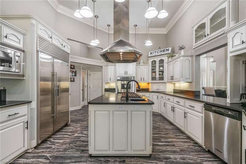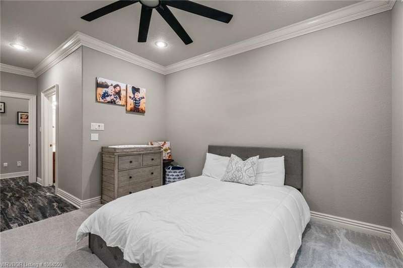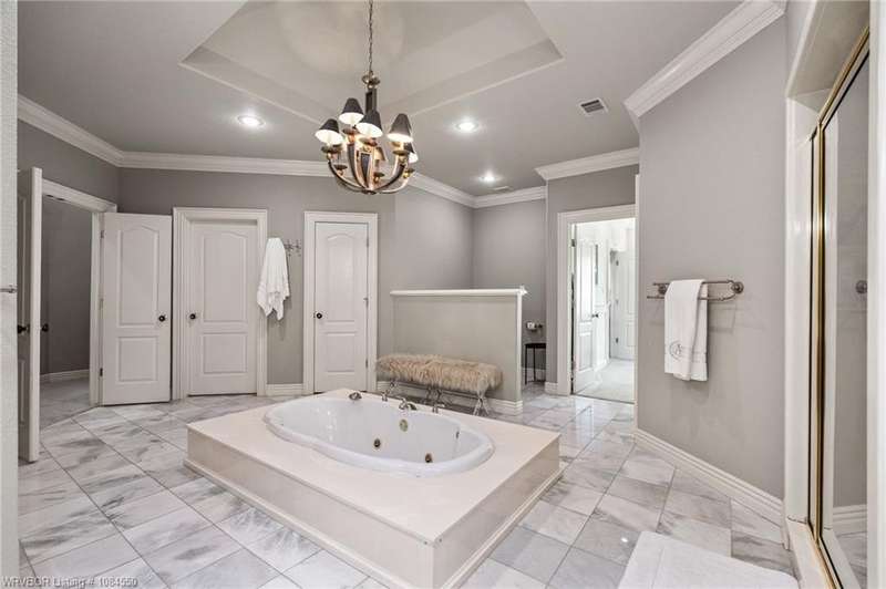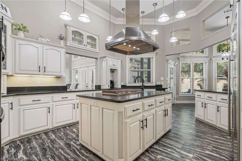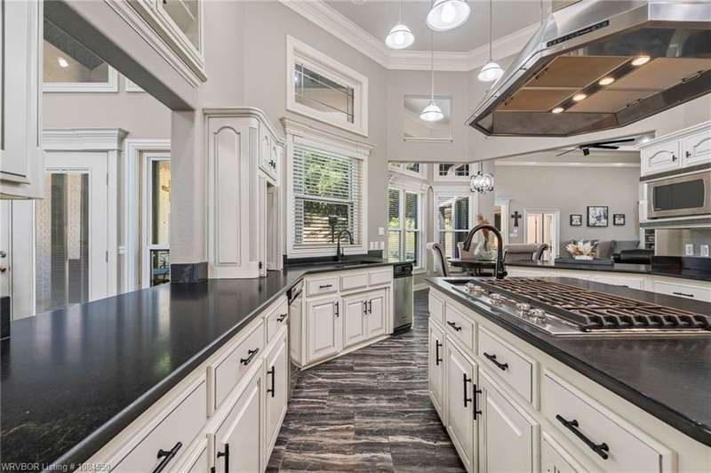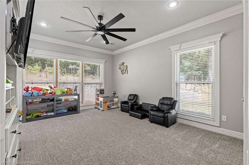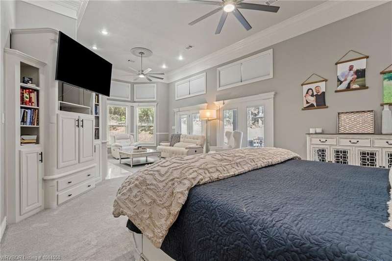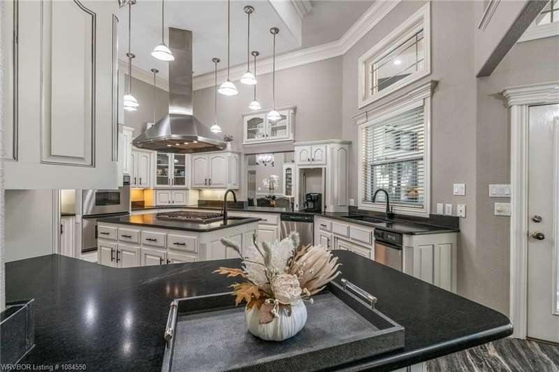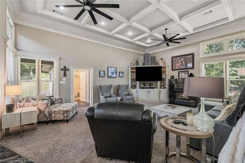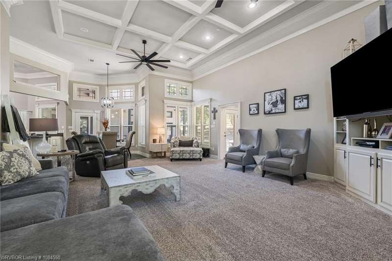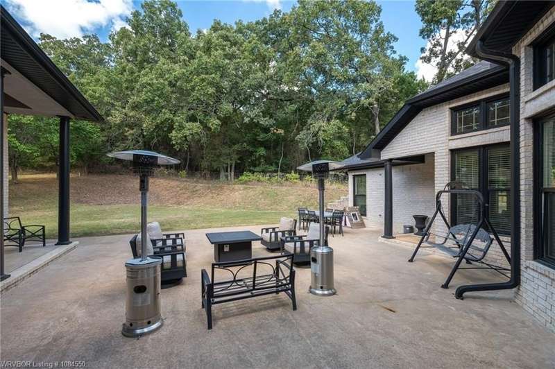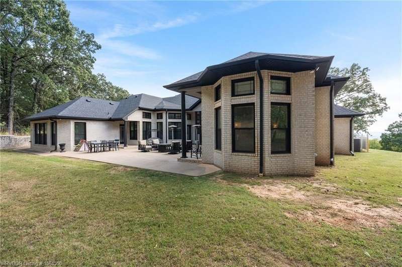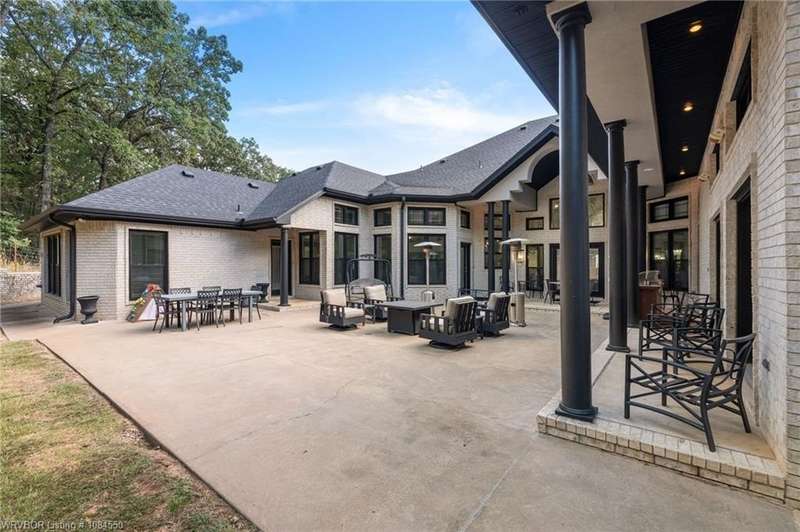 Situated on the prestigious 6th fairway of Eagle Crest Golf Course in Alma, Arkansas, this architecturally designed single-level residence offers an exceptional blend of luxury, privacy, and timeless sophistication. Set on an expansive estate-sized lot at the end of a private cul-de-sac, the nearly 4,500 square foot home is crafted for those who appreciate refined living and effortless functionality. The thoughtfully designed U-shaped floor plan wraps around an impressive 2,000+ square foot rear patio, finished in high-end hardscape—perfect for elegant entertaining or quiet evenings with panoramic golf course views. Inside, the heart of the home is a gourmet kitchen that combines bold design with professional function, featuring rich leathered black granite countertops, high-end stainless-steel appliances, and a built-in Sub-Zero refrigerator. An open-concept layout connects multiple living and dining areas, all accented by soaring ceilings, expansive windows, and designer finishes throughout. The home offers 4 spacious bedrooms, each with its own private en-suite bathroom, providing comfort and privacy for family and guests alike. A centrally located powder room adds convenience for visitors, thoughtfully separated from the private bedroom wings. The expansive primary suite is a true retreat, with serene fairway views, a seating area, a spa-inspired bath, private office and ample closet space. Extensively updated, the home includes a new roof, energy-efficient windows, tankless hot water system, upgraded HVAC, new flooring, and modern lighting. Every detail has been carefully selected to enhance both aesthetics and performance. A rare opportunity to own an executive-level property with golf course frontage, estate-style privacy, and exceptional design in one of Alma’s most desirable communities.